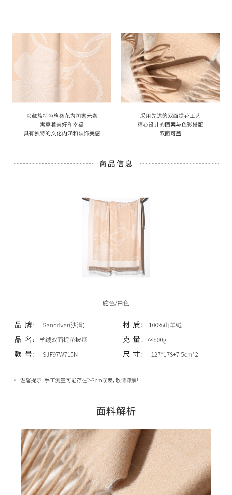 羊绒双面提花披毯SJF97W715N
