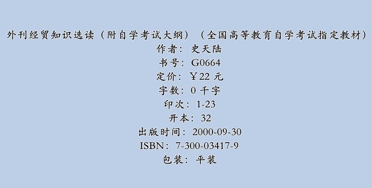 自考 外刊经贸知识选读 0096(附自学考试大纲)史天陆 人大出版社