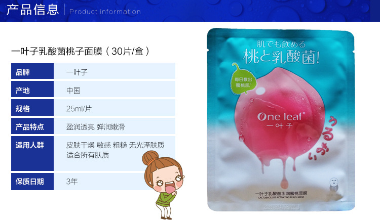 【美妆个护】—叶子桃子面膜乳酸菌水润蜜桃补水保湿学生水蜜桃面膜女30片