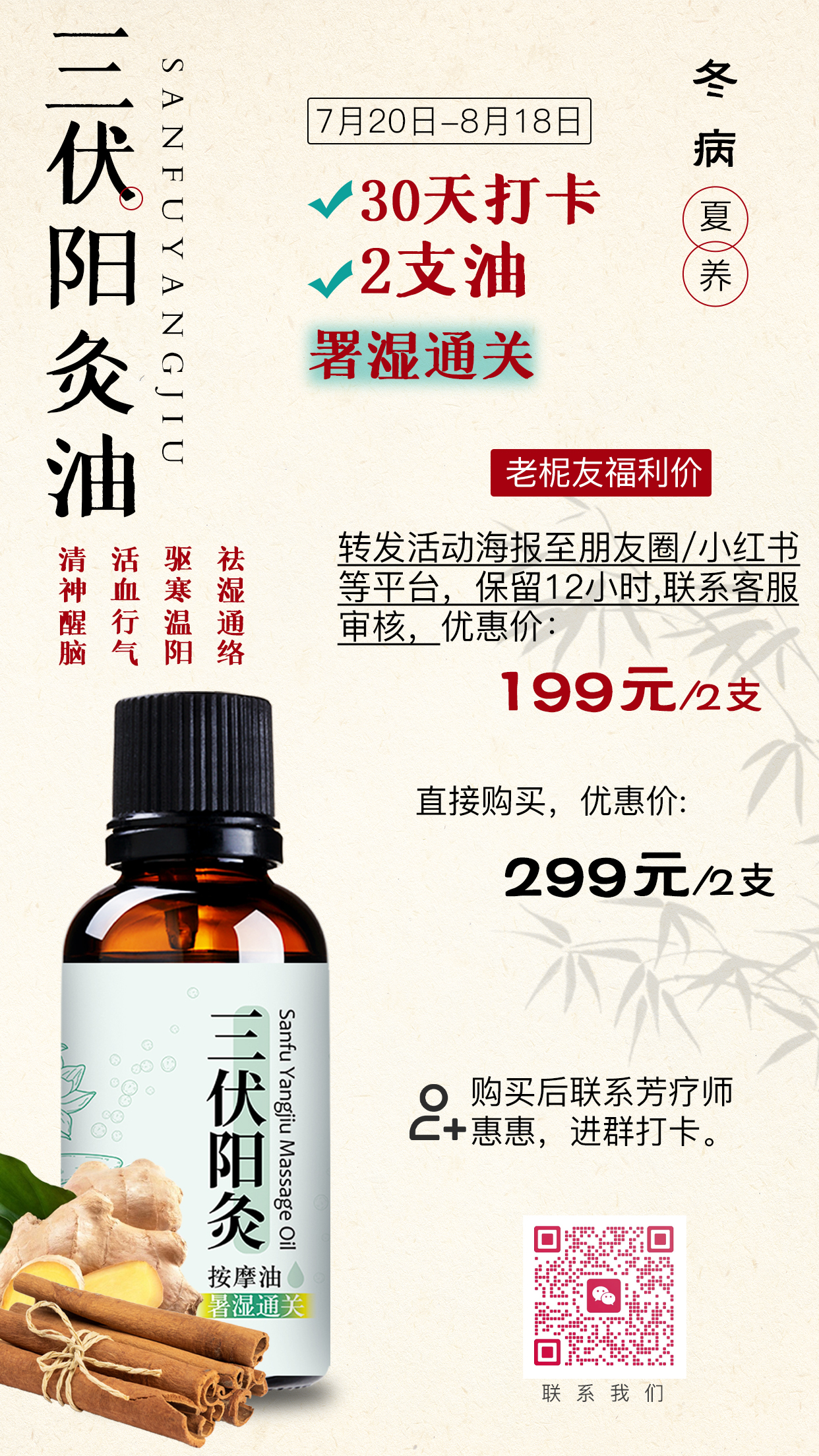 参与方式:添加惠惠(haitaotianshi08)进群,微信朋友圈/小红书连续 30 天打卡(分享每日涂油照片+感受),无缺卡→送 三伏油30ml正装1瓶!
