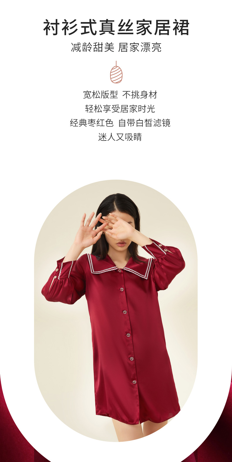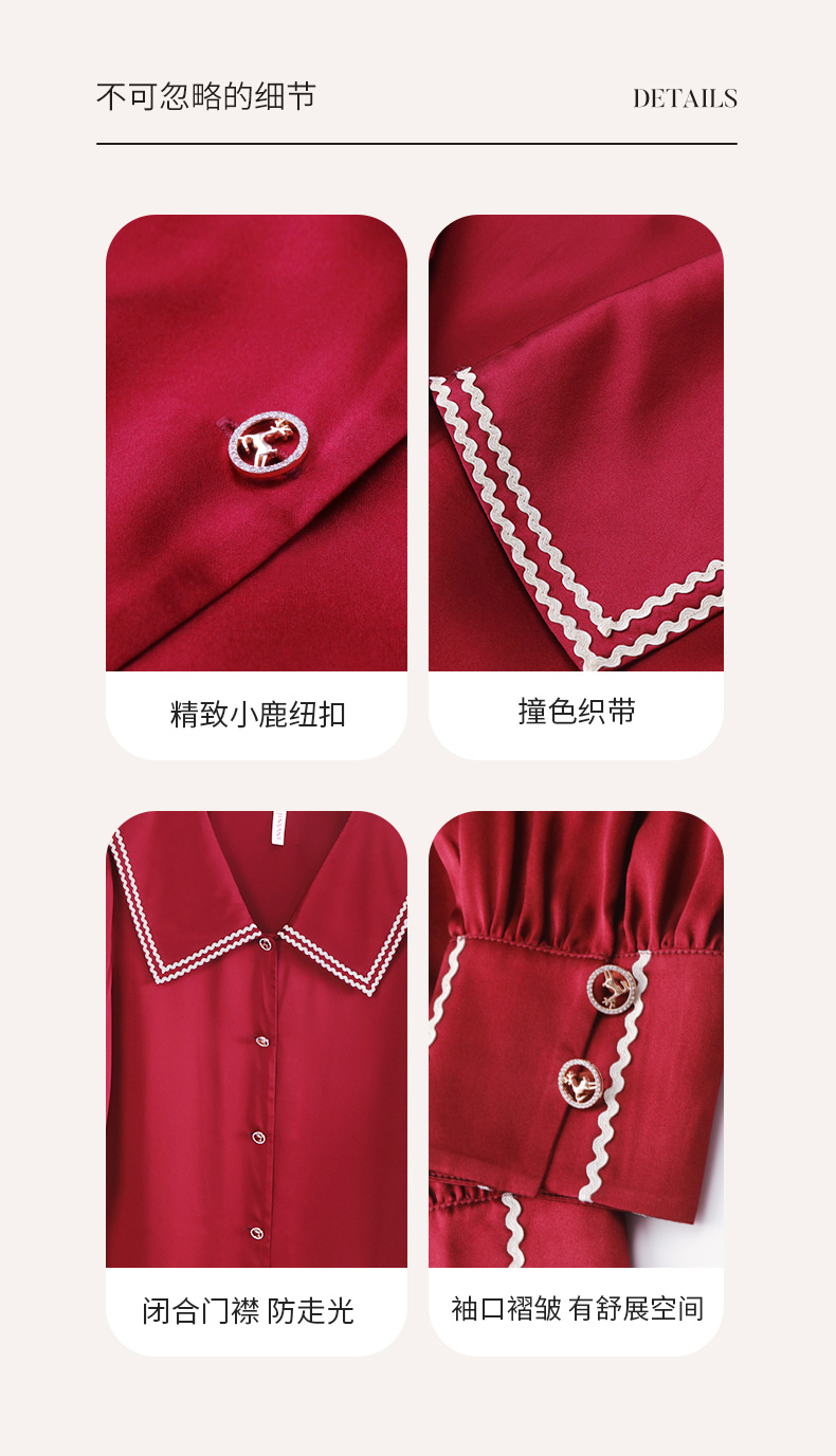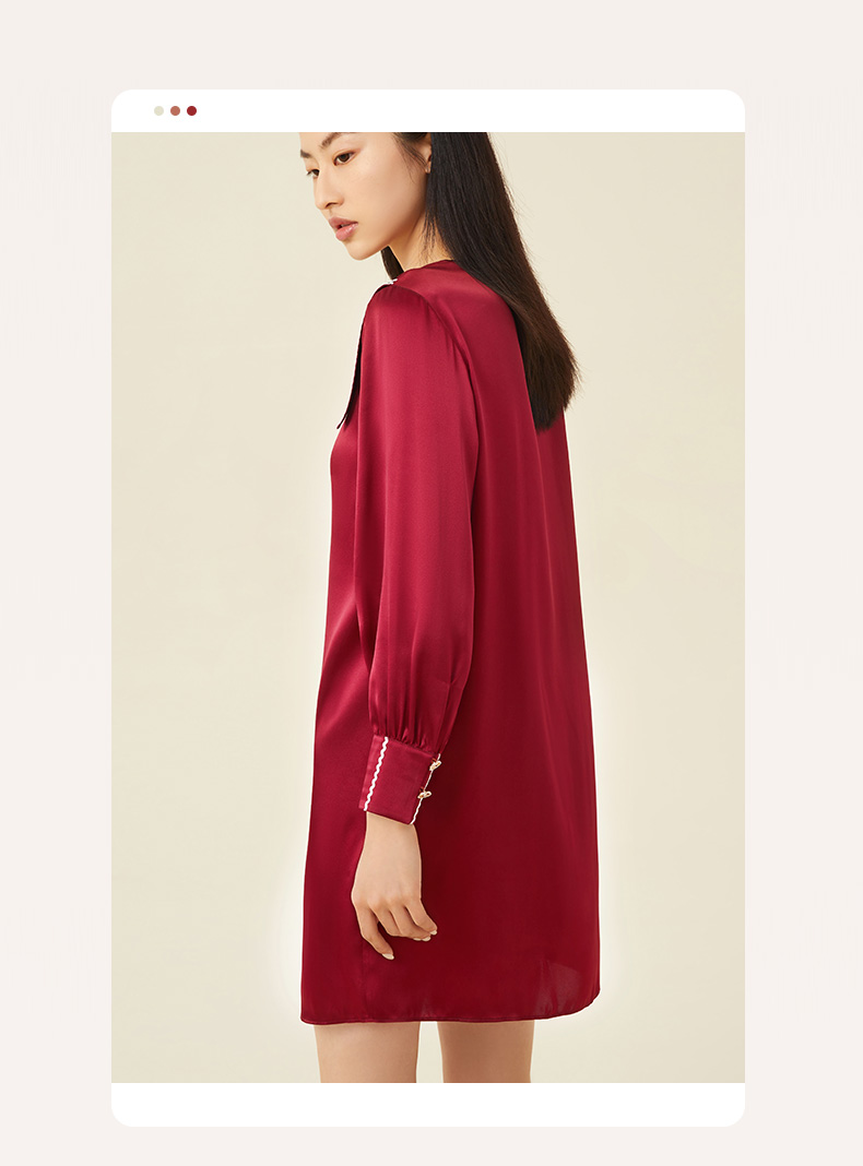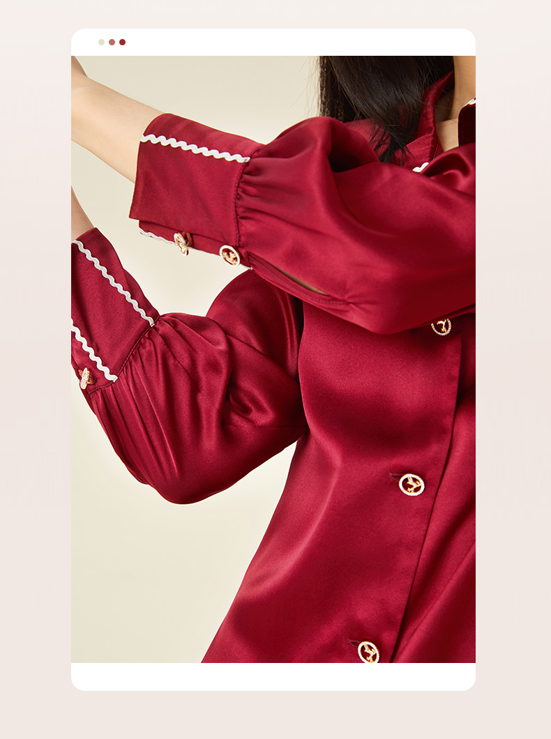 金三塔100%桑蚕丝 丝滑凉感 小香风衬衫式女士真丝翻领睡裙家居服 YSFCC302