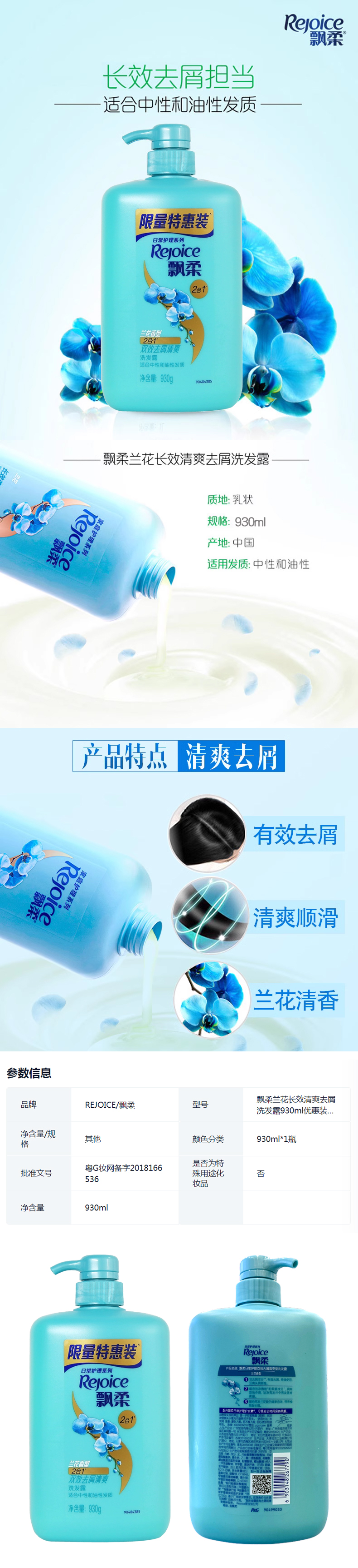 飘柔兰花长效清爽去屑洗发露优惠装(930ml)【60015020】