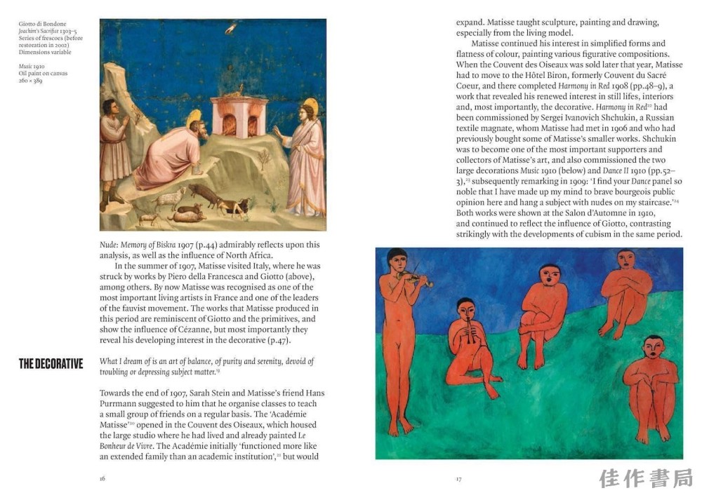 亨利·马蒂斯(1869–1954)是20世纪早期现代艺术的领军人物,也是有史以来最重要的色彩大师之一。在长达半个多世纪的多产职业生涯中,他创作了数量庞大且风格多样的作品,涵盖素描、绘画、雕塑、陶瓷以及装饰艺术。这本简明的书籍引人入胜地介绍了这位杰出艺术家的生平与作品。它将马蒂斯的艺术生涯置于具体背景中进行阐述,从他在巴黎的非正式学习,到早期对印象派的研究,再到他创作第一幅野兽派画作的关键转折点——这幅画标志着他对色彩的平面性、简洁的形状以及蜿蜒流畅的线条进行实验的独特兴趣。书中着重介绍了这位艺术家极具革命性的剪纸技法,在他因健康状况不佳而卧床不起、无法作画后,剪纸成为了他选择的创作媒介。这本书展现了这位现代艺术大师不懈的热情和惊人的创作动力。