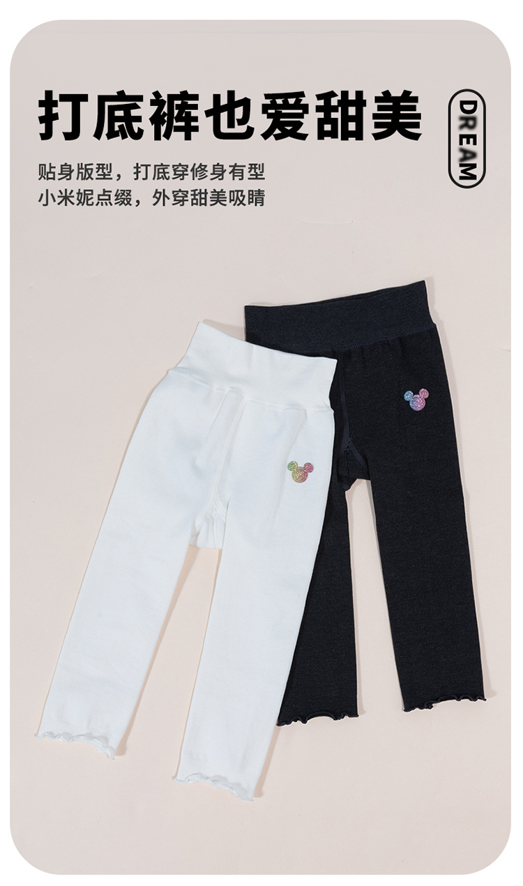 【商城同款】迪士尼秋冬新款女童裤子细条绒宝宝九分裤中大童百搭保暖休闲裤223DK0469