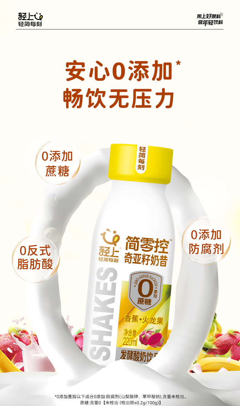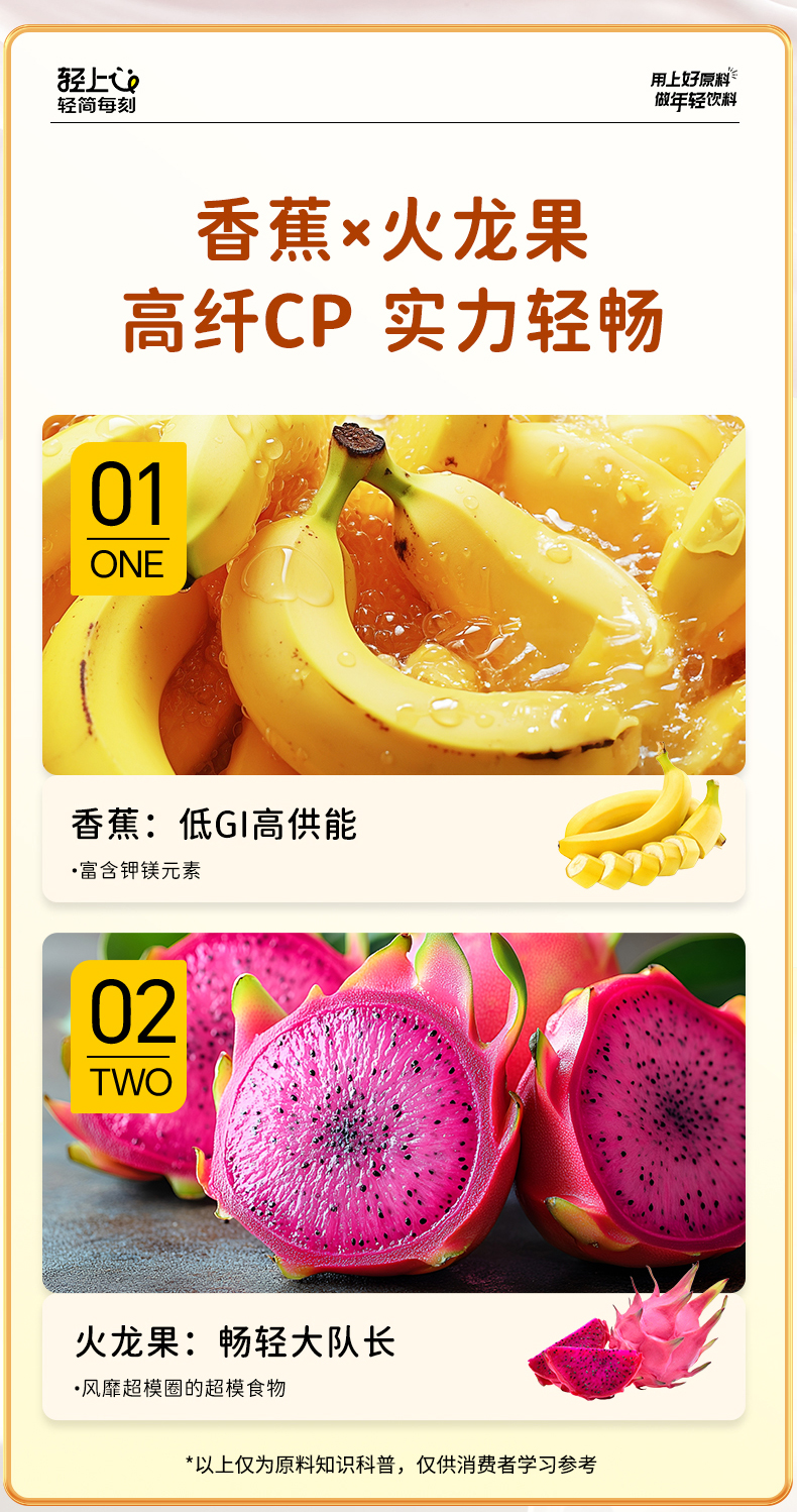 轻上香蕉火龙果奇亚籽奶昔富含膳食纤维发酵酸奶饮品