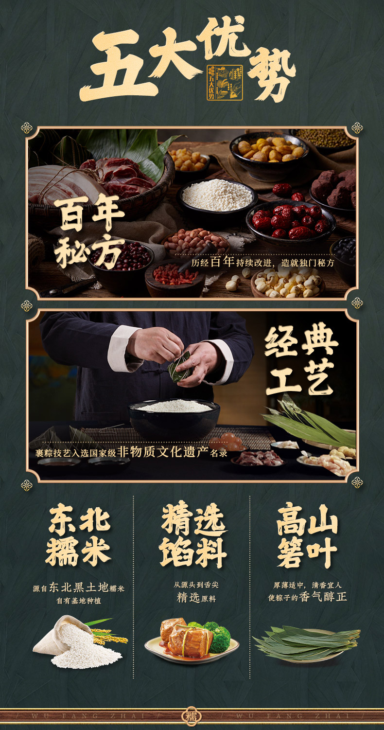 五芳斋 祥和五芳礼品粽 鲜肉大粽子豆沙蜜枣甜粽团购 嘉兴特产1120克
