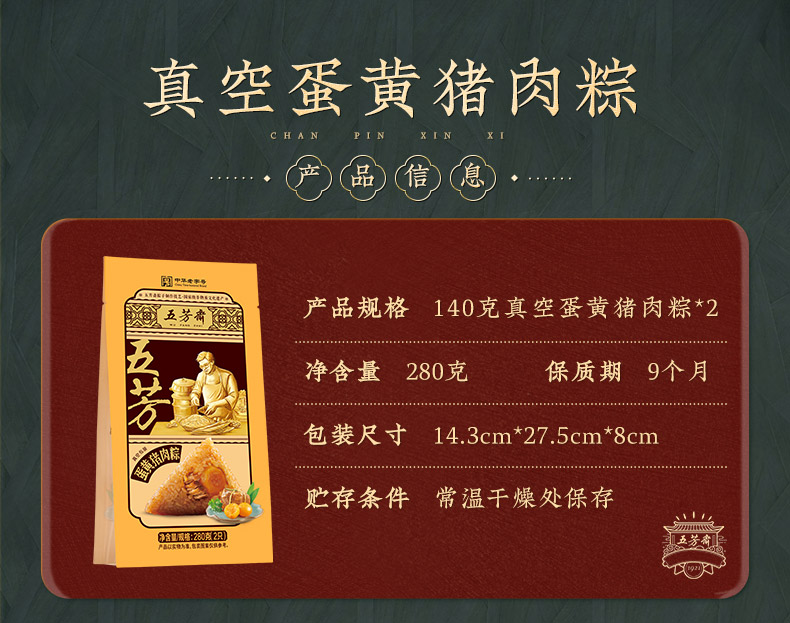五芳斋 真空蛋黄猪肉粽 真空保鲜 大颗蛋黄 140g*2