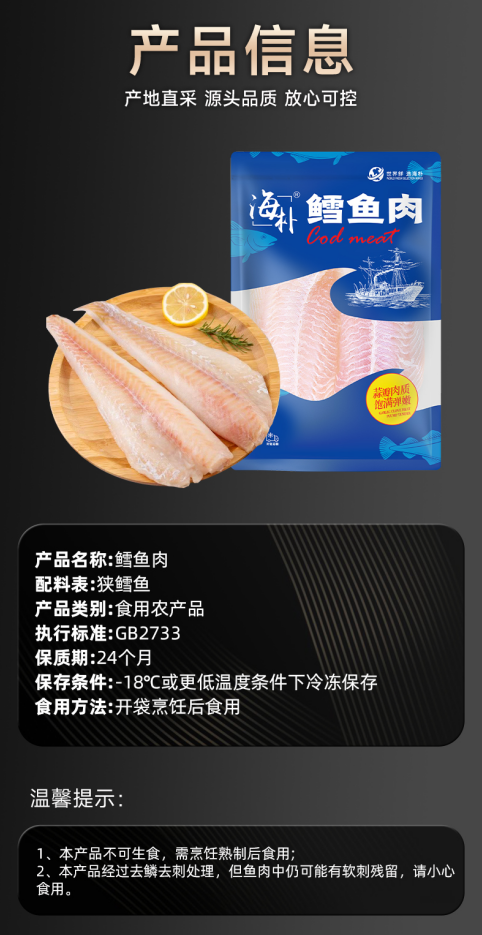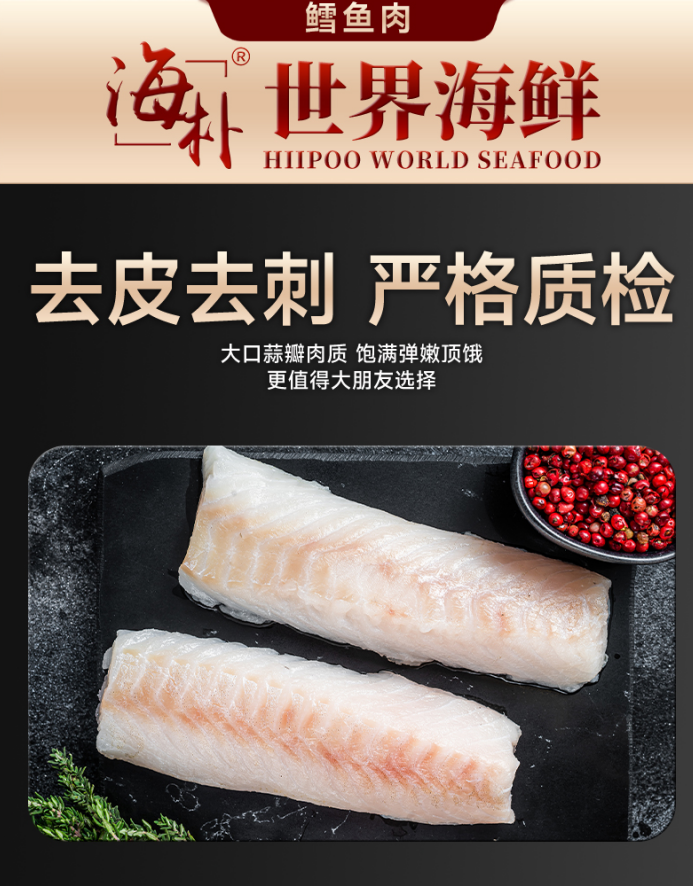 [海朴]鳕鱼肉去皮去刺脱骨整片狭鳕鱼排鳕鱼块肉片3斤