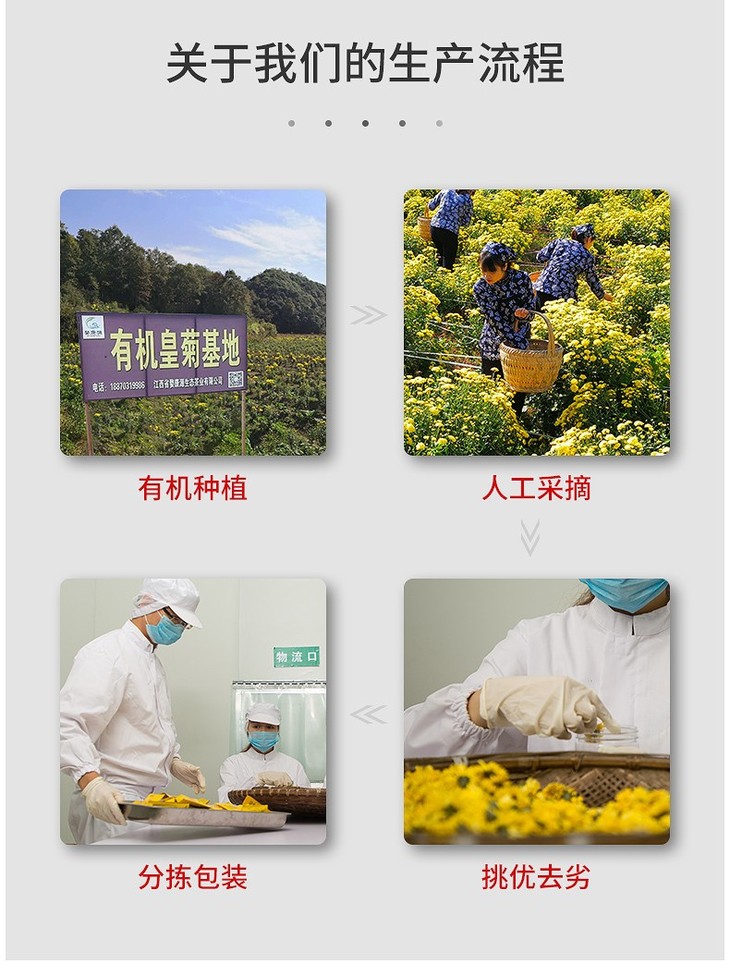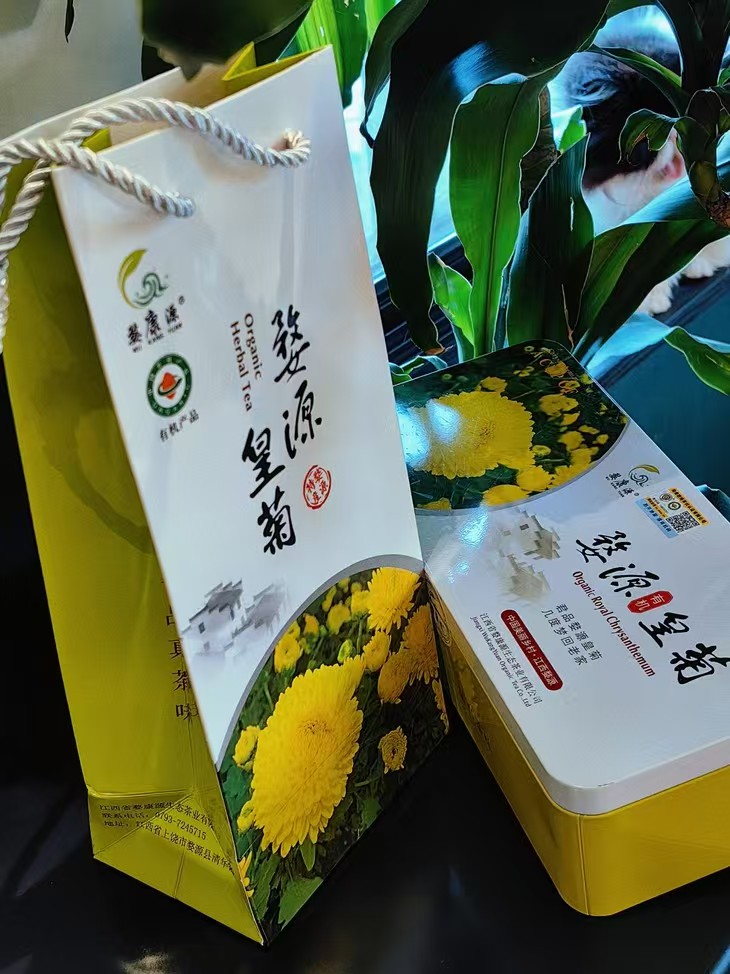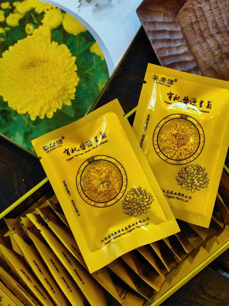 除了优秀的自然环境,品牌也一直坚持有机。从种植到收获,每一个环节都严格按照有机认证的管理体系进行。不打农药、不施化肥、不用化学添加剂,只使用专用有机肥,确保每一朵皇菊都能在纯净的环境中生长。自2018年获得有机认证以来,婺源皇菊每年都会进行一次严格认证,以确保其品质的持续稳定。
