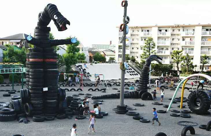 轮胎乐园——用轮胎搭建的游乐世界,这里有轮胎“小怪兽”,也是小朋友们玩捉迷藏的绝佳之地哦~