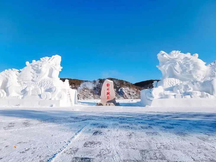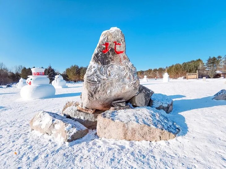 - “神州北极石”,天然花岗岩略加雕琢而成,此石号称(天涯海角、南天一柱,齐名。)并与之遥相呼应,是北极村标志性的建筑。冬季,冰雕和雪雕也是我们这里冬季唯一很有特设的人文景观。停下我们的脚步,我们前去拍照留影。有兴趣的话可以到最北的滑雪场一展身手。还可以和来自芬兰的圣诞老人合影留念。