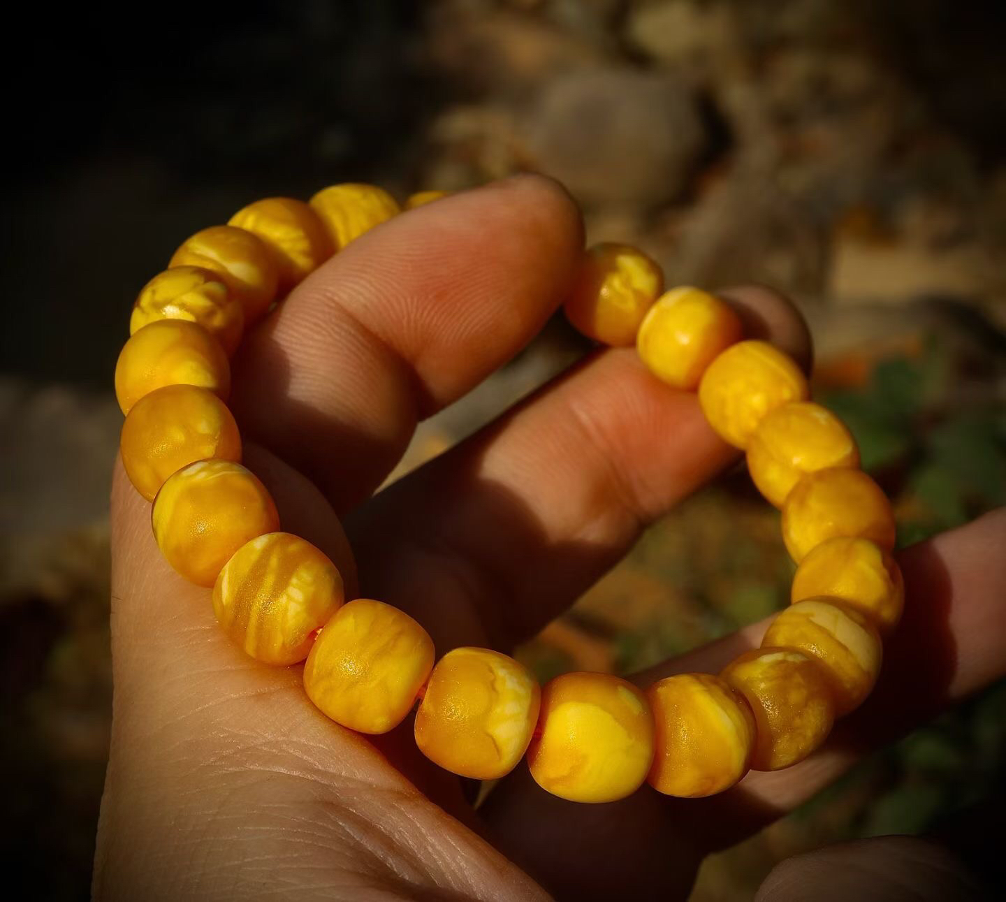 【青山特惠】10.5mm花蜡虎皮纹小年份老蜜蜡精工老型手串,14.5克 m246