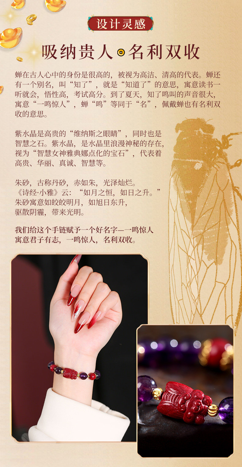【祈愿吉品】一鸣惊人紫水晶手链女手串金蝉学生考试考公中考高考上岸送礼