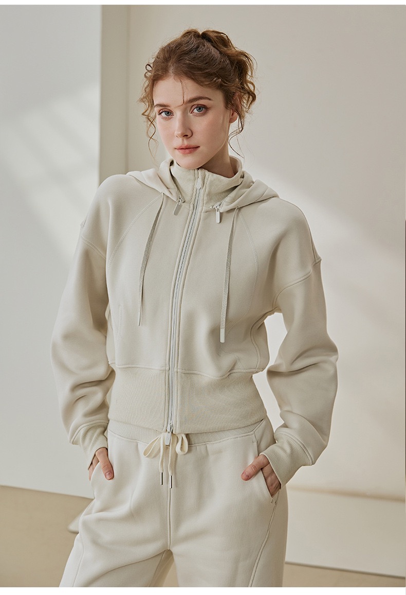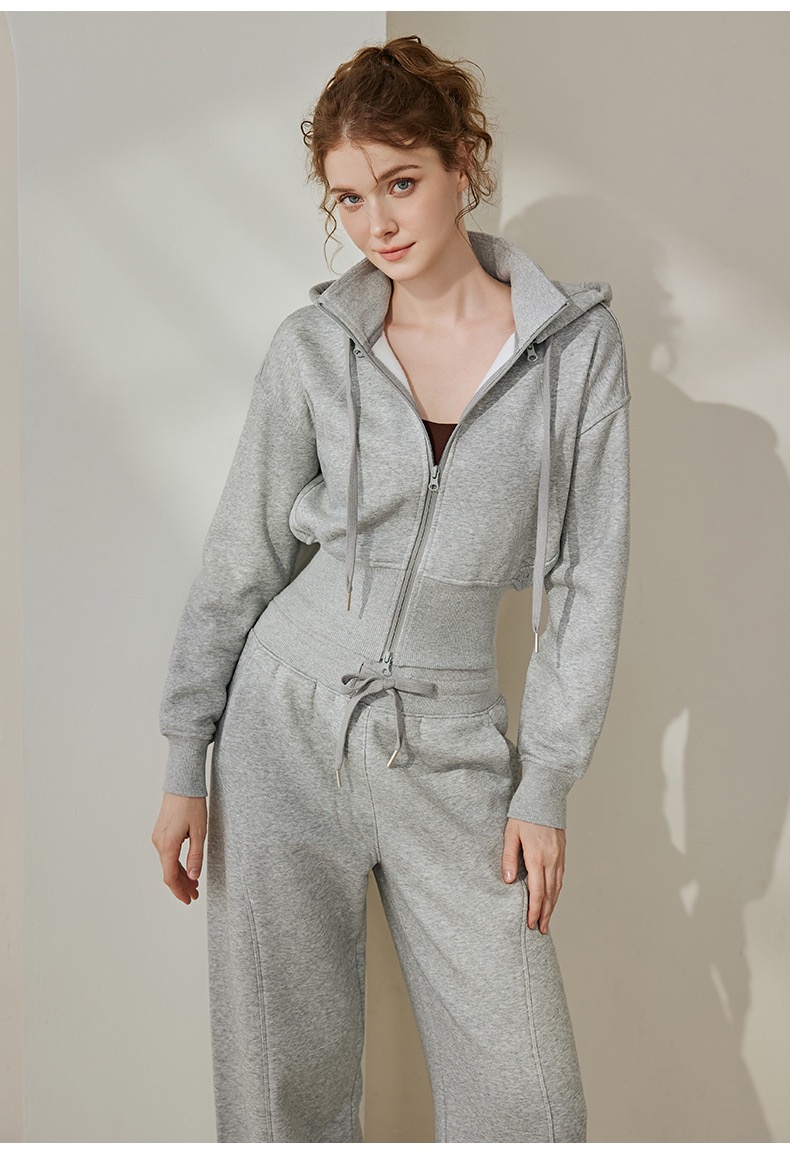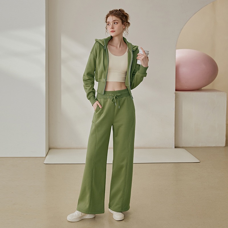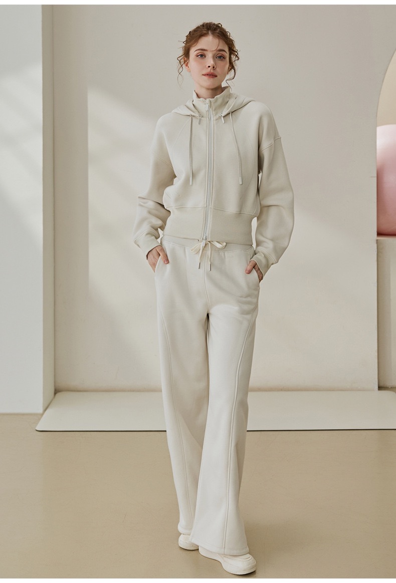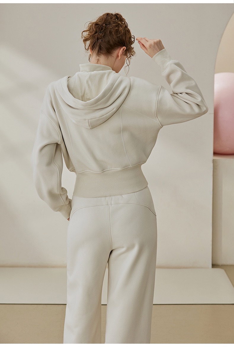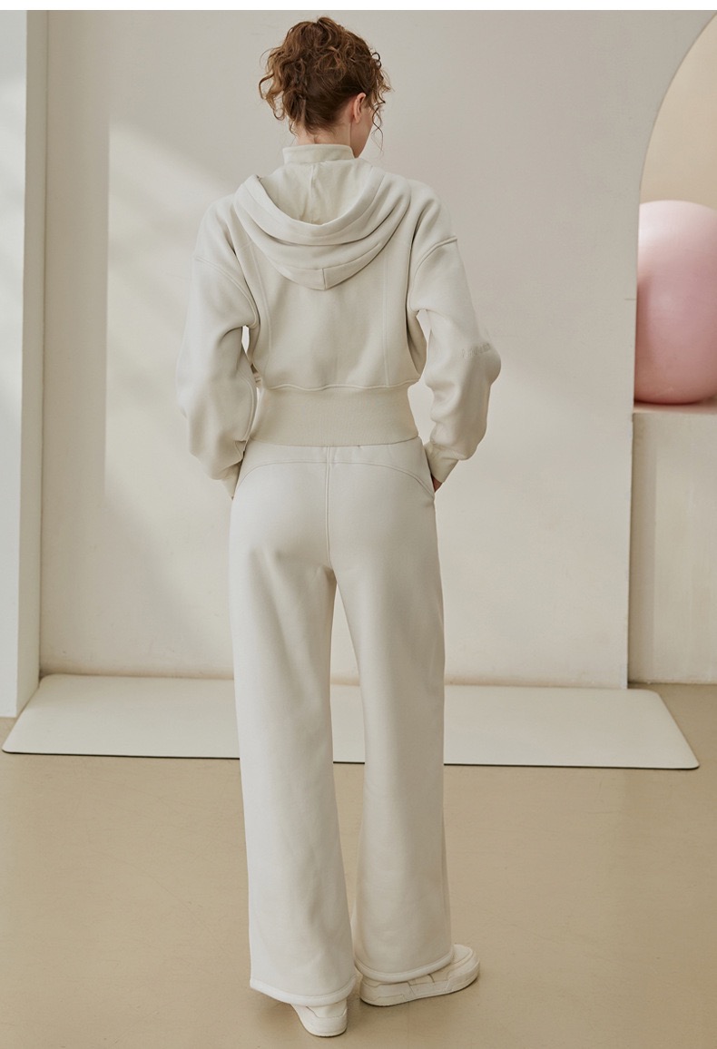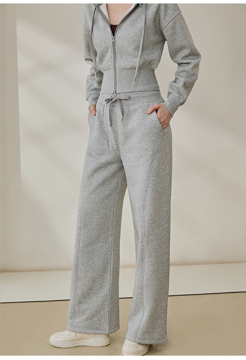 秋冬新款设计感加绒加厚连帽长袖外套宽松休闲阔腿裤女运动套装SF8763