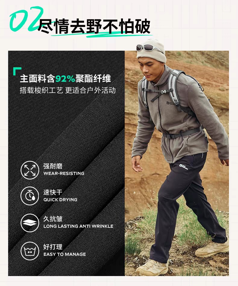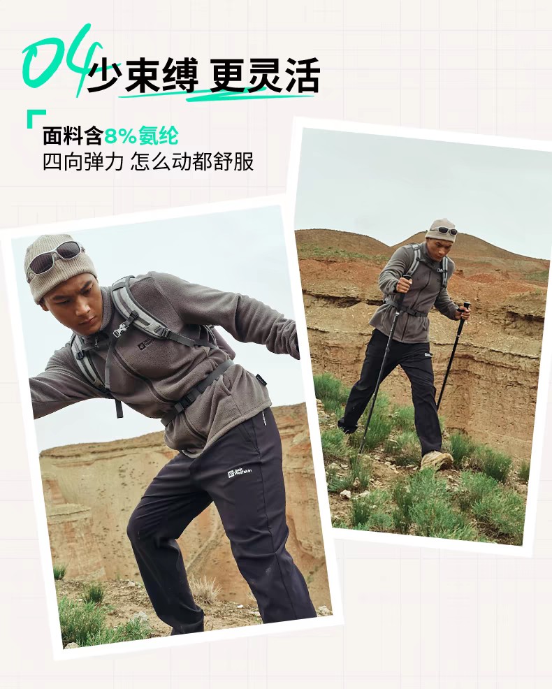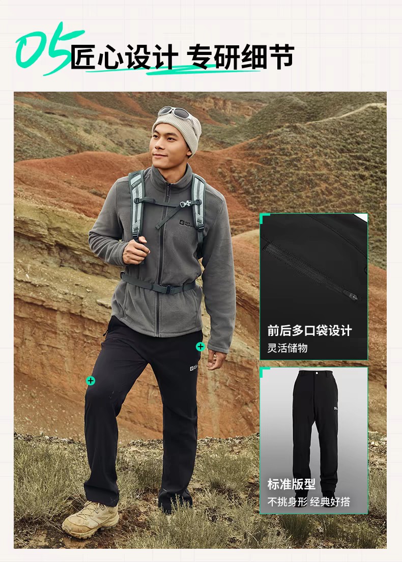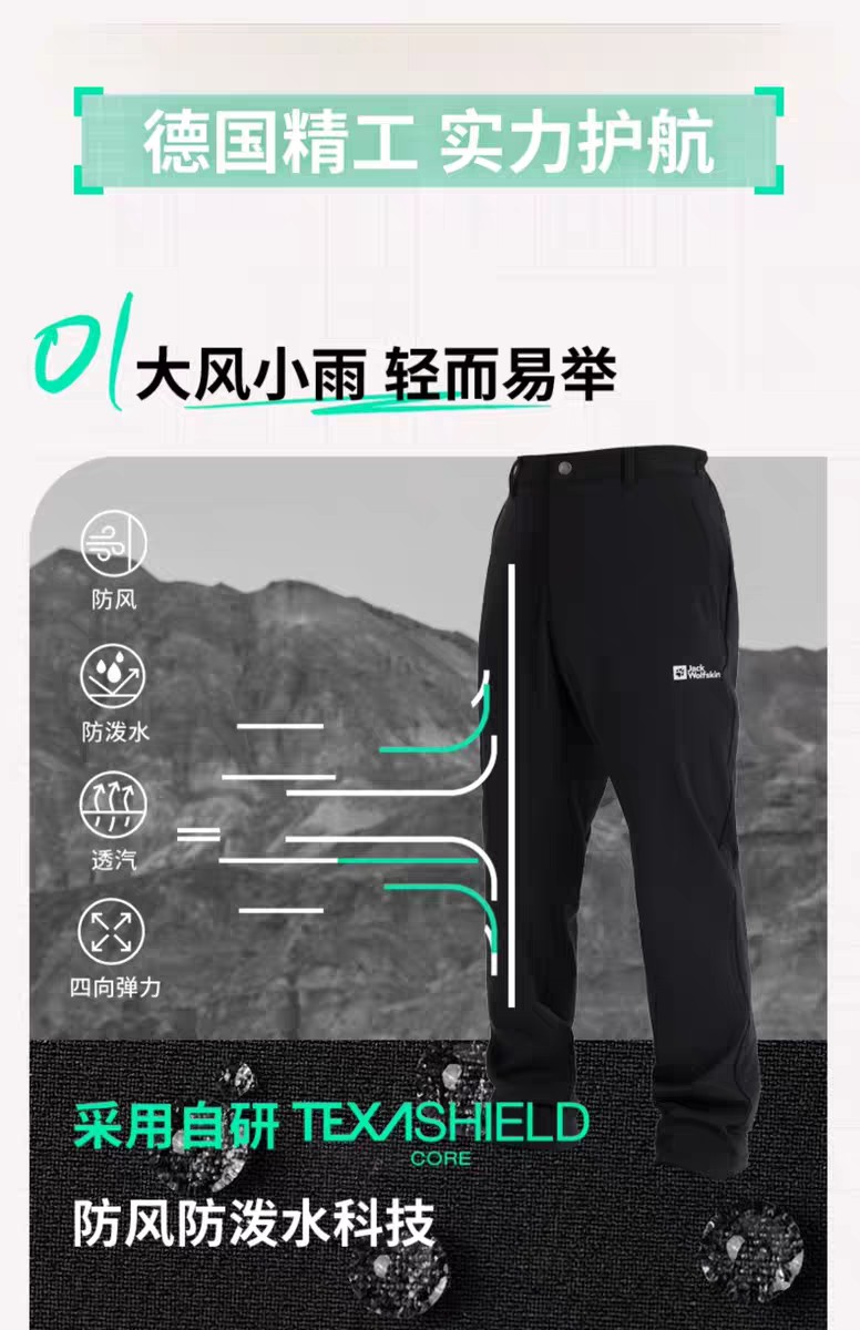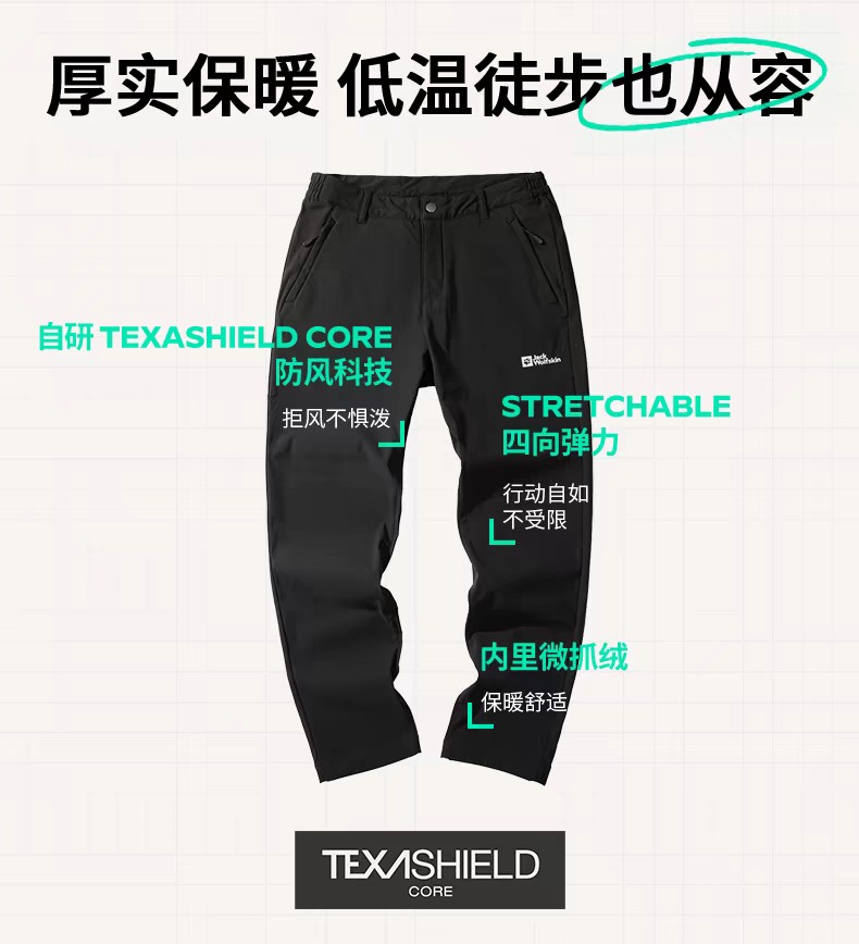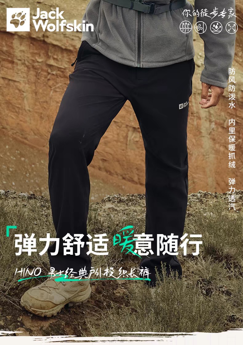 【春上新】【7折】6楼JACKWOLFSKIN狼爪HINO男士防风经典户外加绒梭织长裤5519174-C0413吊牌价999折后699