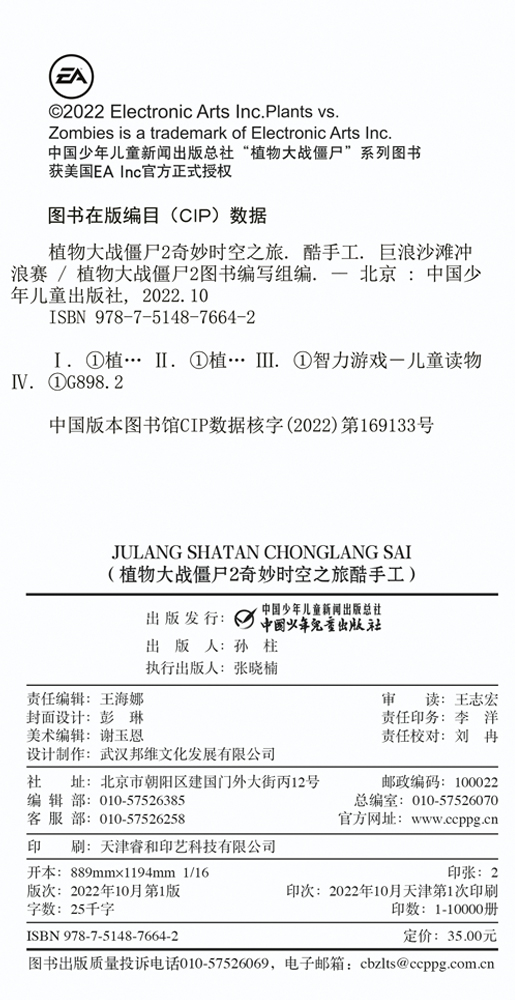 作者简介:植物大战僵尸2图书编写组是中国少年儿童新闻出版总社在获得美国宝开游戏公司官方授权之后组建的编辑团队。已编辑出版“植物大战僵尸游戏书系列”“植物大战僵尸立体酷拼插系列”“植物大战僵尸立体玩偶拼插系列”等。