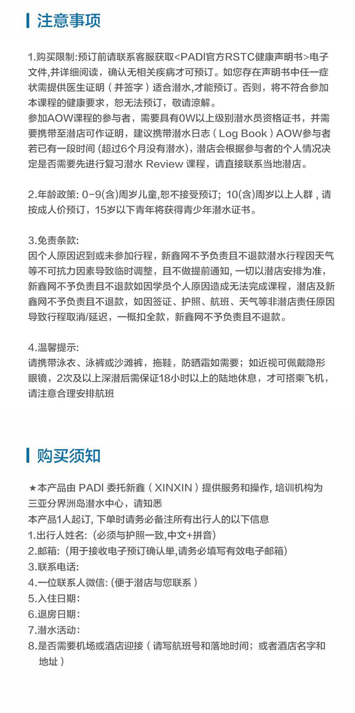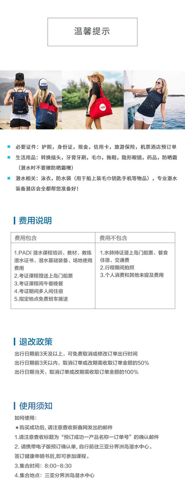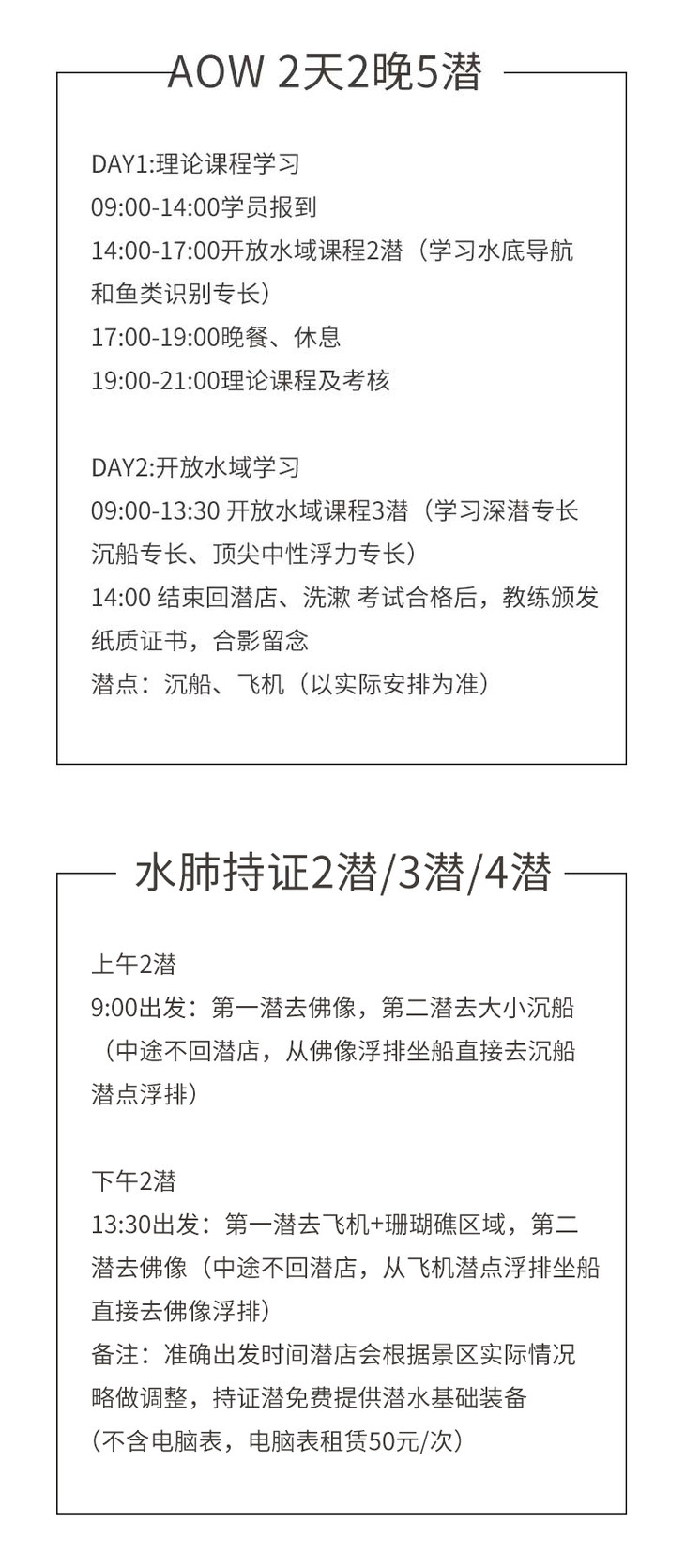 2.水肺持证潜水不含分界洲岛门船票、餐食和住宿,需要自行安排的哦