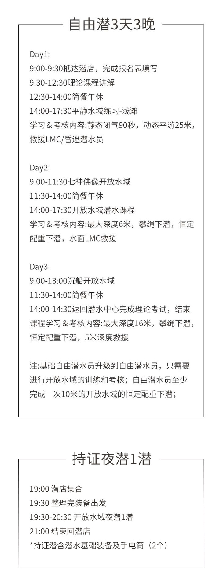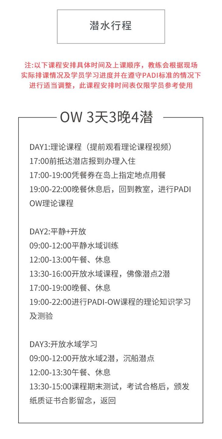 1.考证课程提供分界洲往返门船票、午餐、晚餐、多人间住宿、免费水下拍照(课程完成的前提下,非精修照片,设备:Gopro)