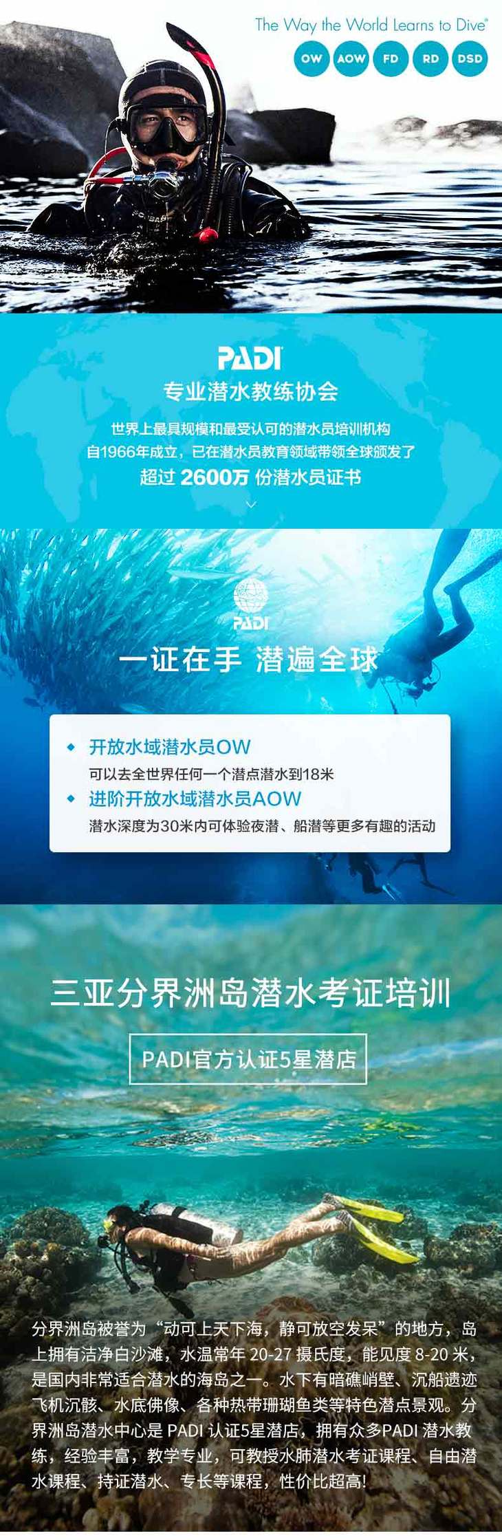 【行程】三亚分界洲岛PADI潜水考证OW/AOW/O+A联考/自由潜/持证