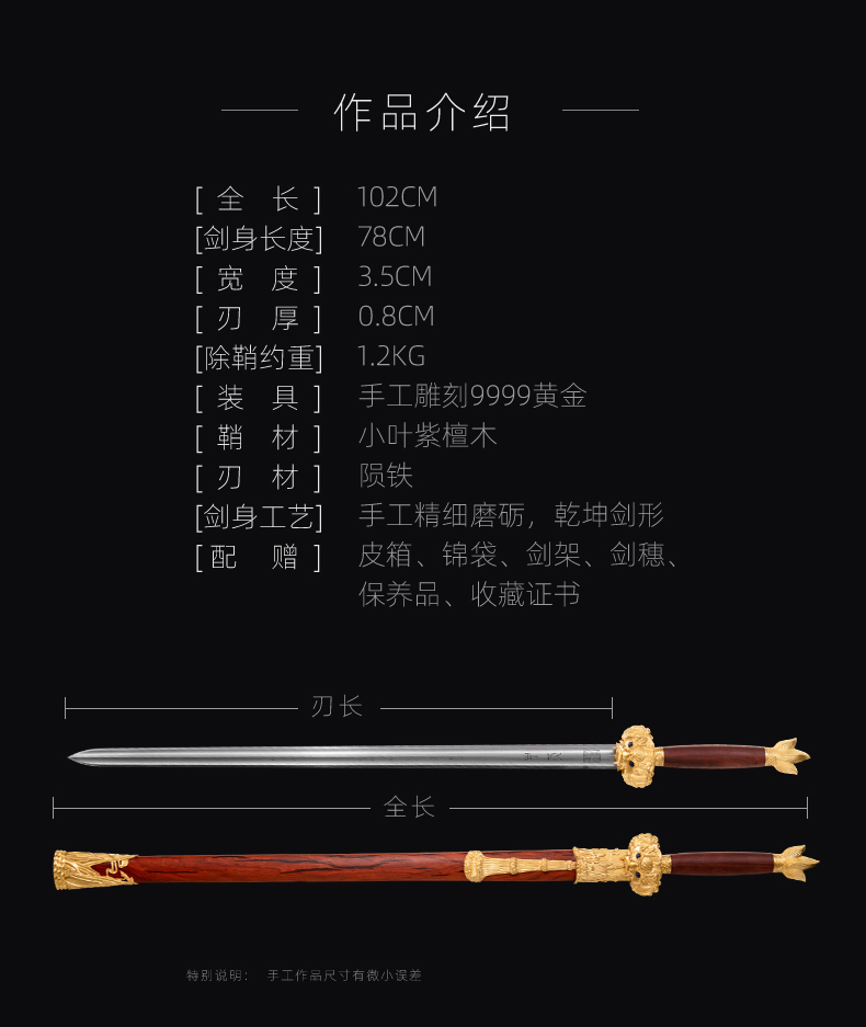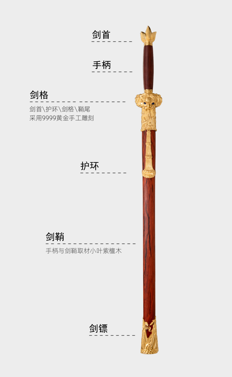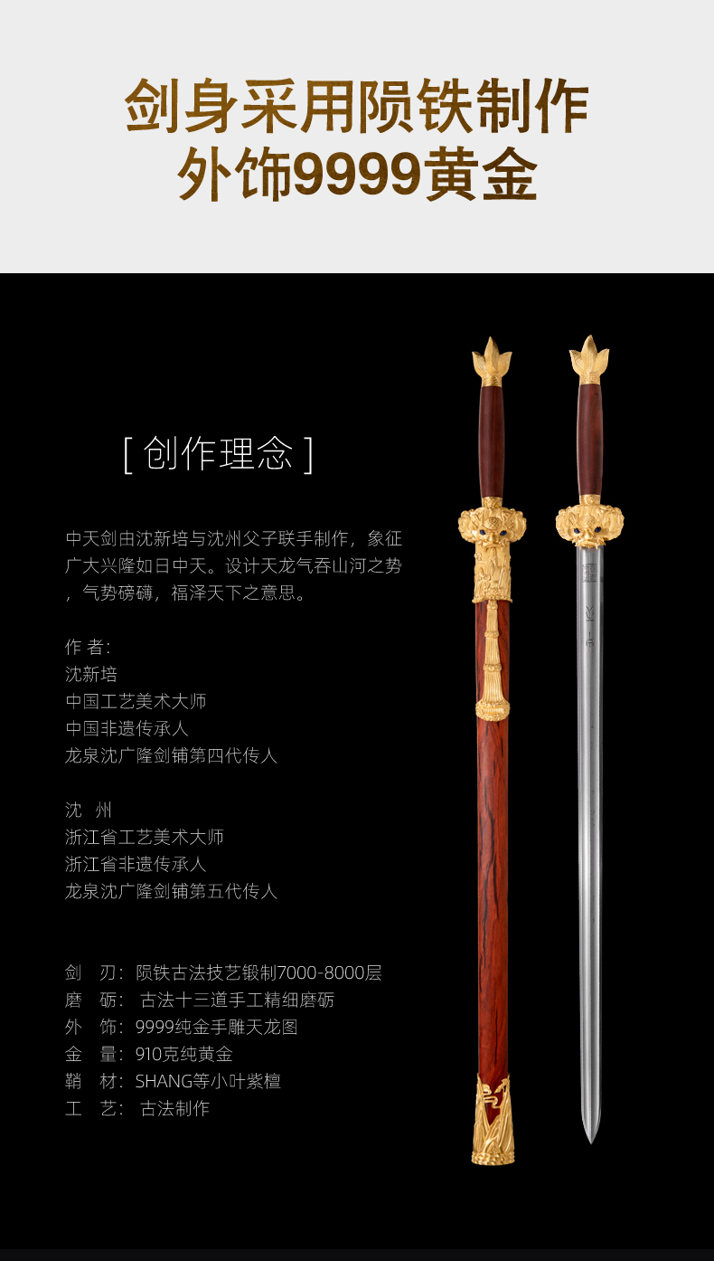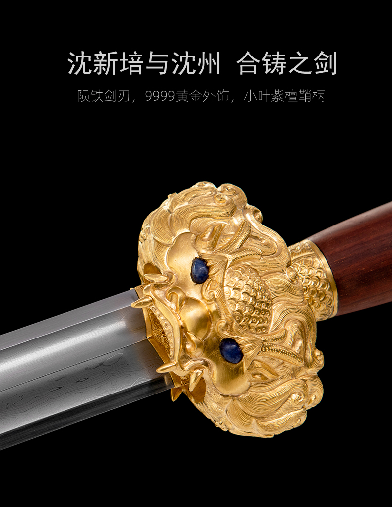 中天剑 沈新培沈州合铸宝剑 陨铁剑 9999纯金外饰 小叶紫檀鞘柄 龙泉沈广隆宝剑 未开刃