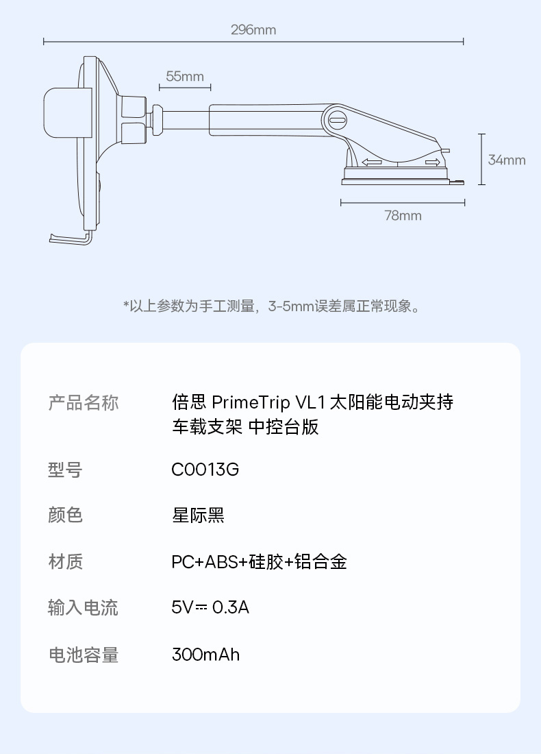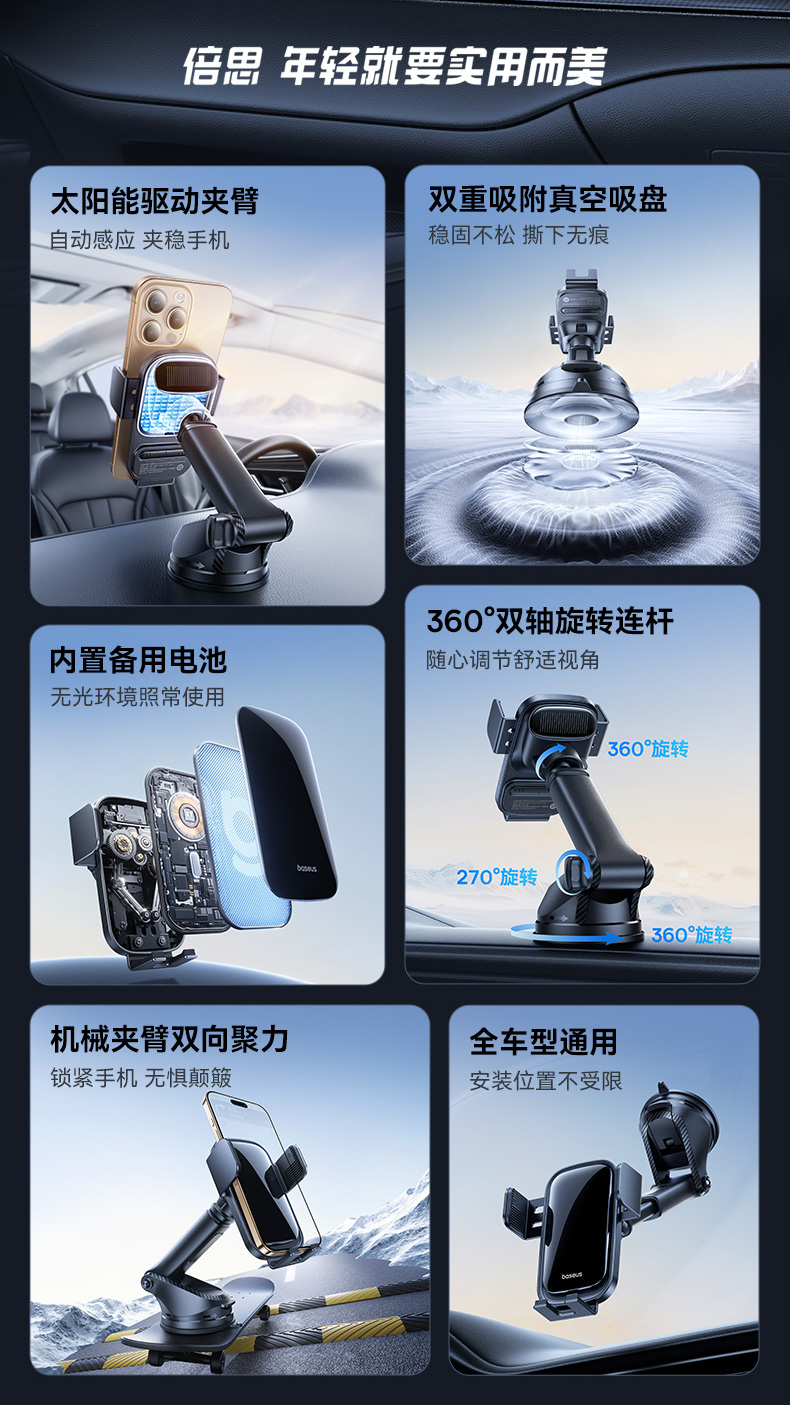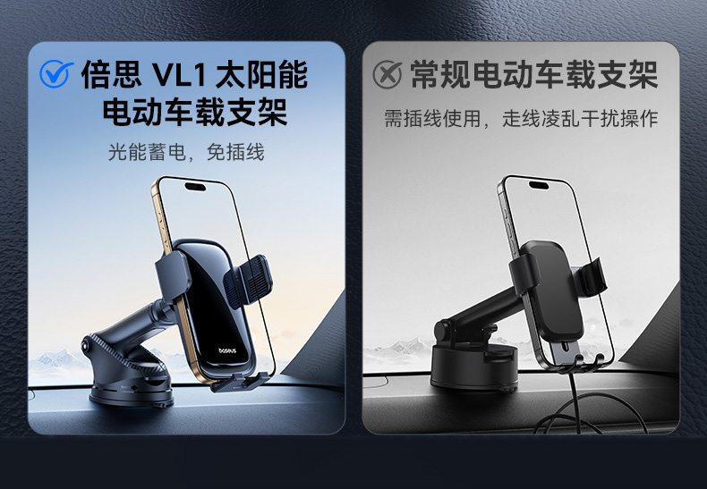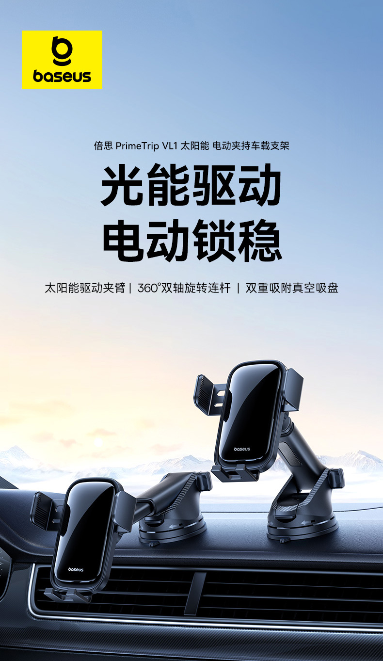 倍思 PrimeTrip VL1 太阳能电动夹持 车载支架 中控台版