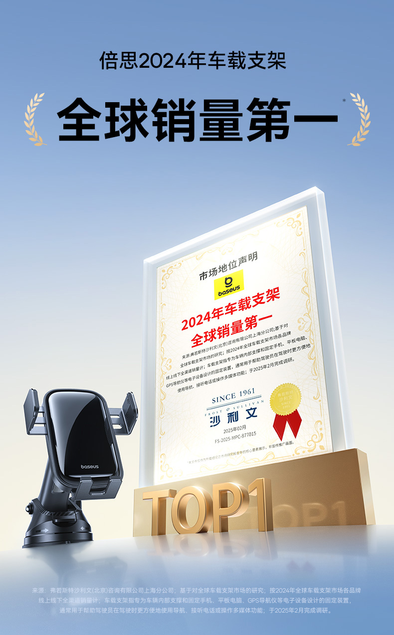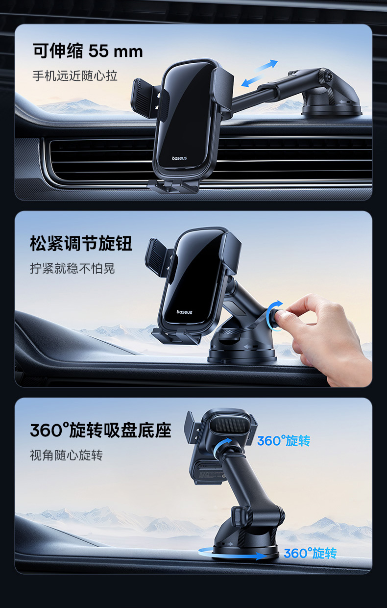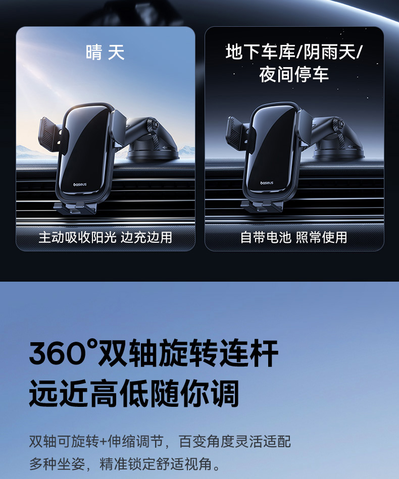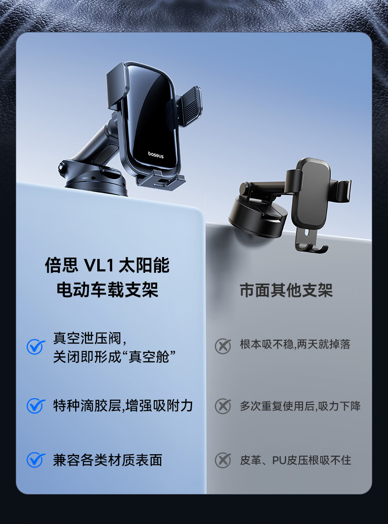 倍思 PrimeTrip VL1 太阳能电动夹持 车载支架 中控台版