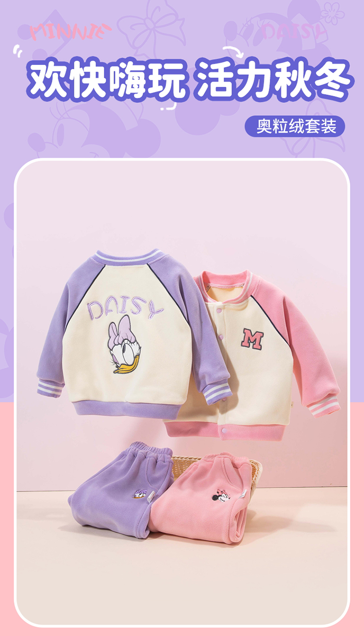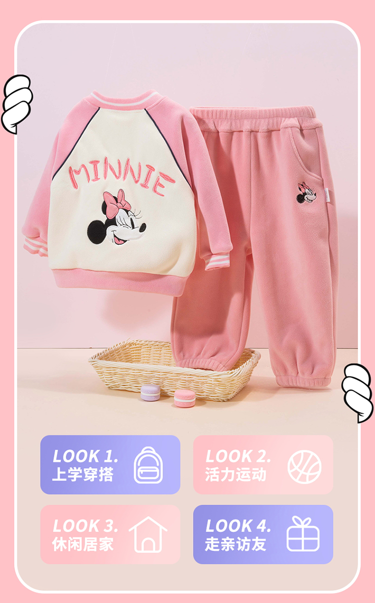 迪士尼童装女童双面奥粒绒可爱甜美米妮套装儿童外套保暖套装ZD3DT015