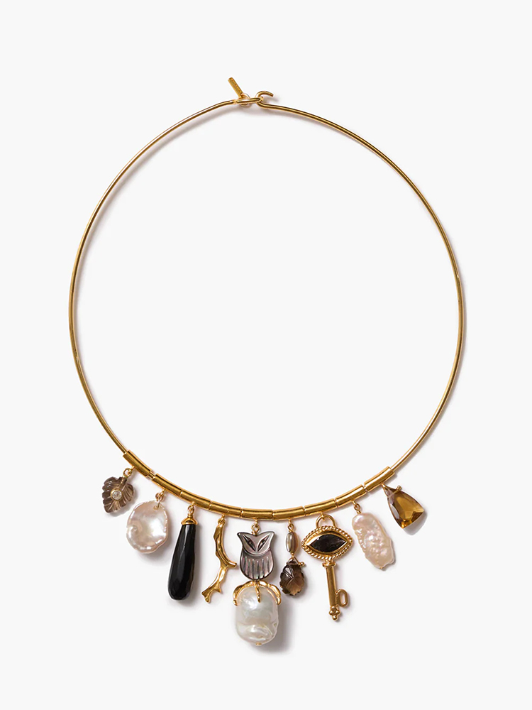 订购6周到|Chan Luu-NOCTURNE-珍珠母贝 紫苏辉石 烟晶 威士忌石英 淡水珍珠 项圈[美国设计师]