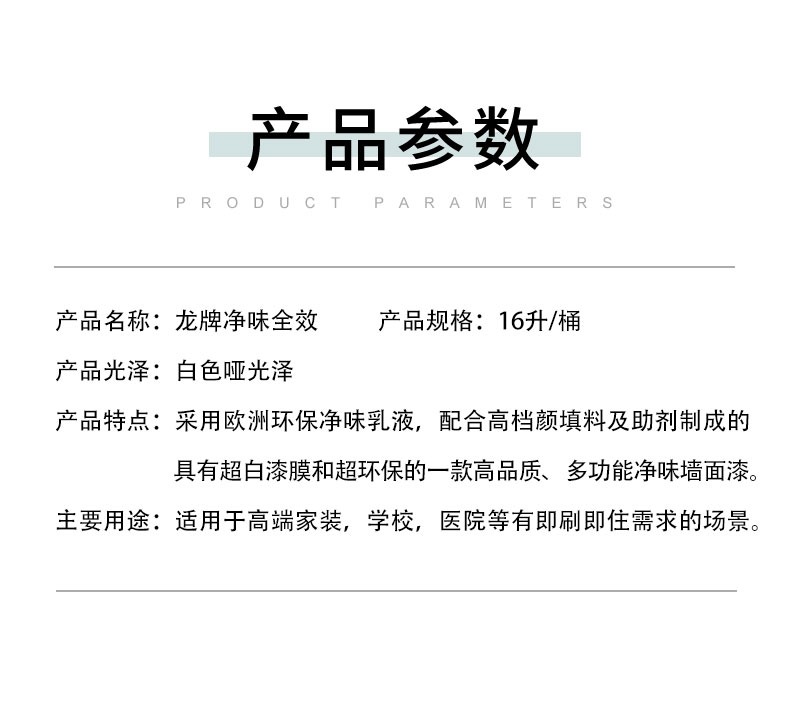 龙牌净味全效乳胶漆 内墙涂料 净味全效16L