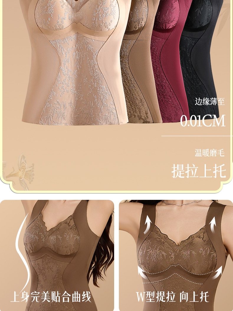 【国风浮雕❗️无痕保暖背心】高阶穿搭轻装上阵,提拉上托自然有型,温暖塑形轻盈无痕,馥郁繁花浮雕提花,固定杯免穿内衣聚拢修身打底德绒上衣女QQ