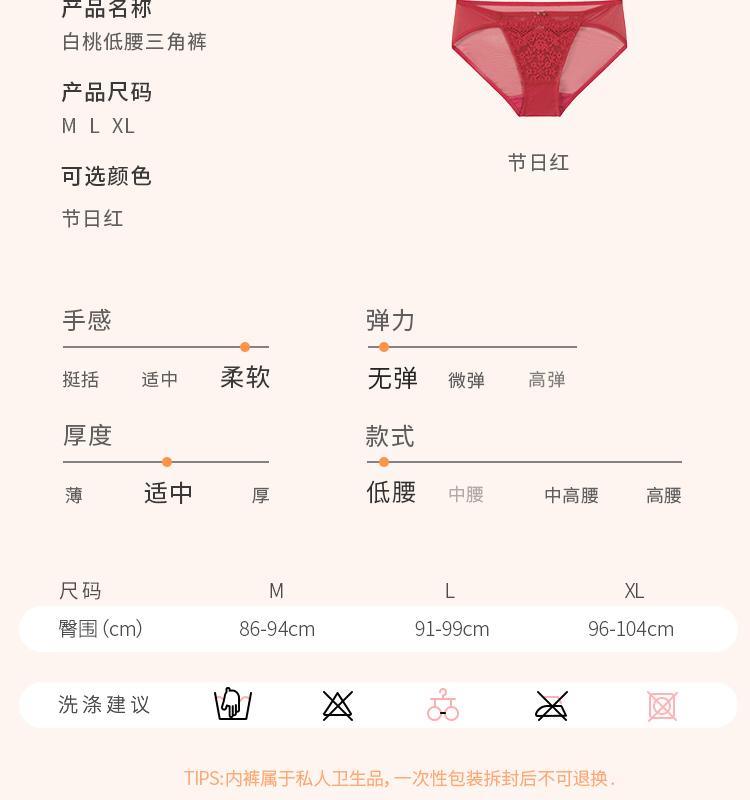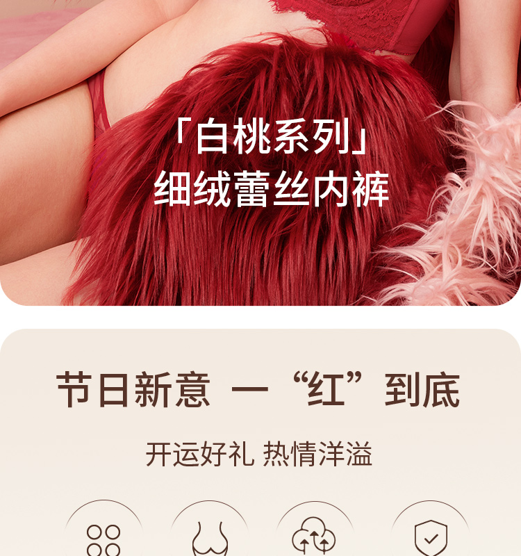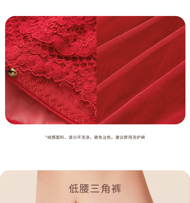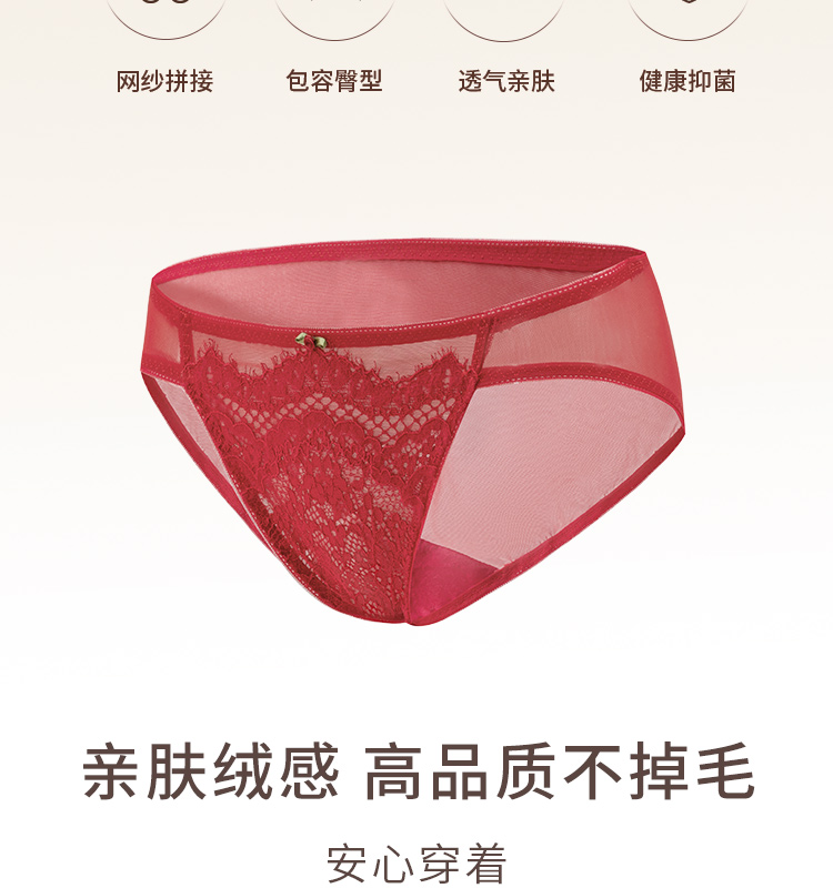 奶糖派白桃配套内裤本命年红雪绒蕾丝小裤柔软亲肤低腰三角裤女
