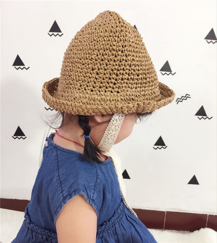 【母婴 】ins爆款春夏儿童草帽 0-2岁宝宝遮阳帽防晒帽女童蕾丝系带帽子