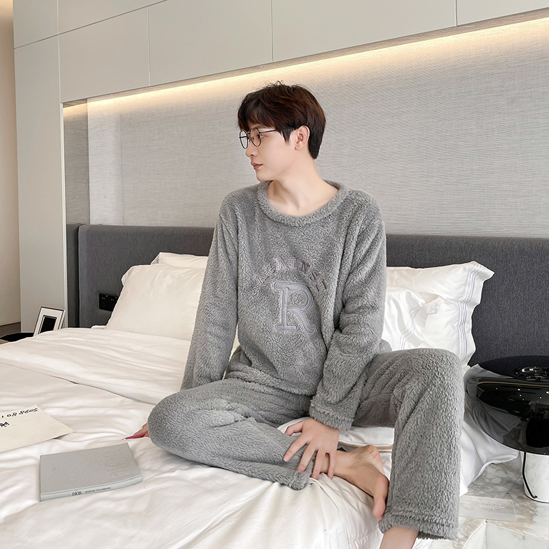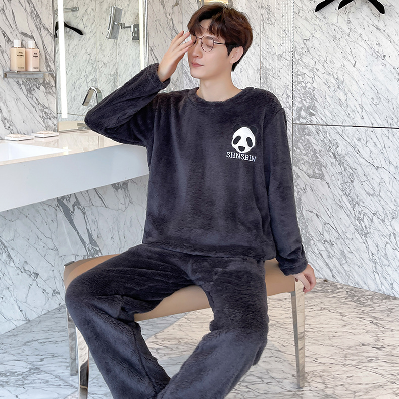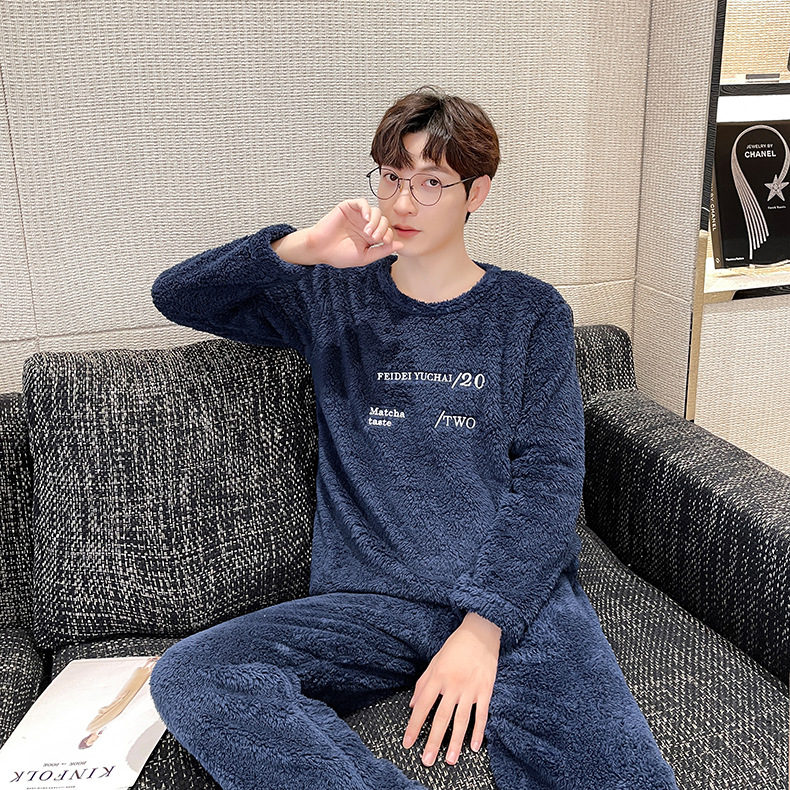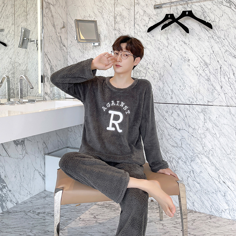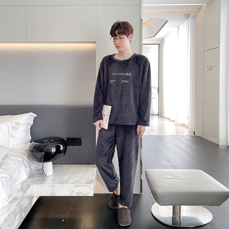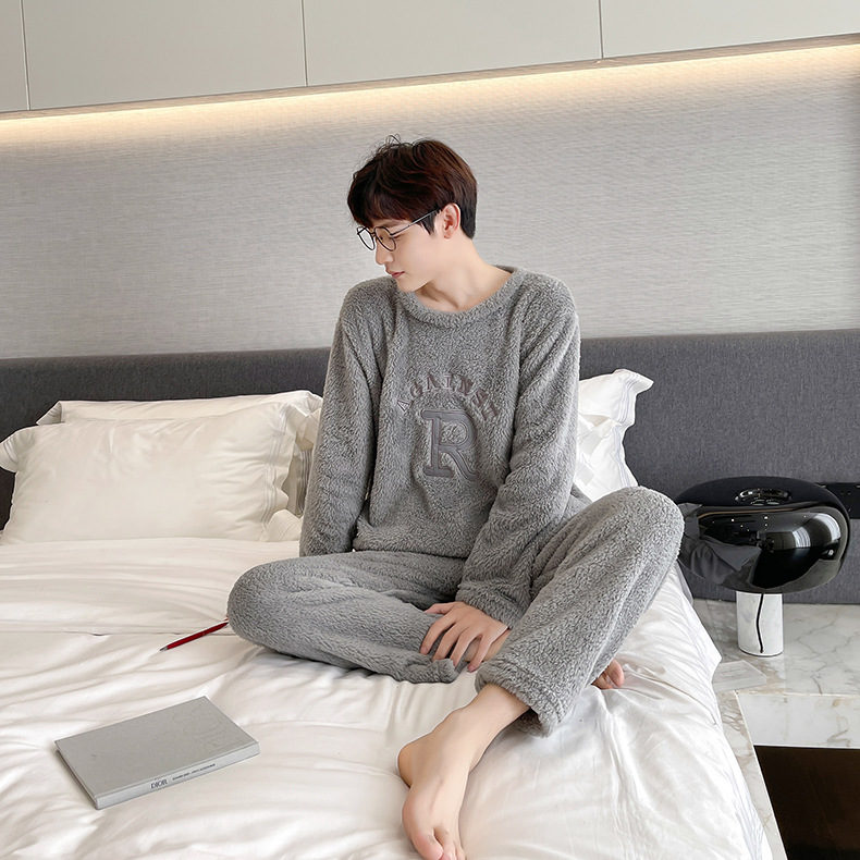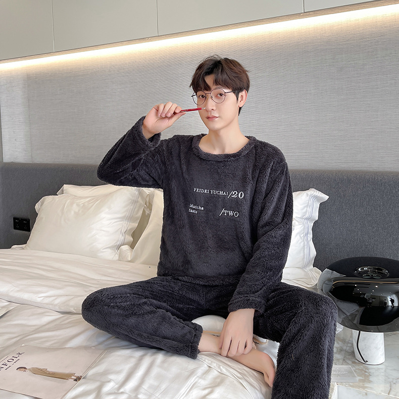 【睡衣】法兰绒冬季男士睡衣加绒加厚保暖长袖套头家居服简约大码190斤以内