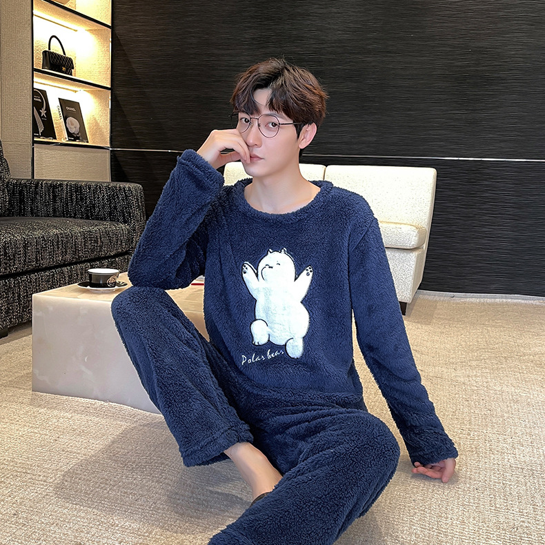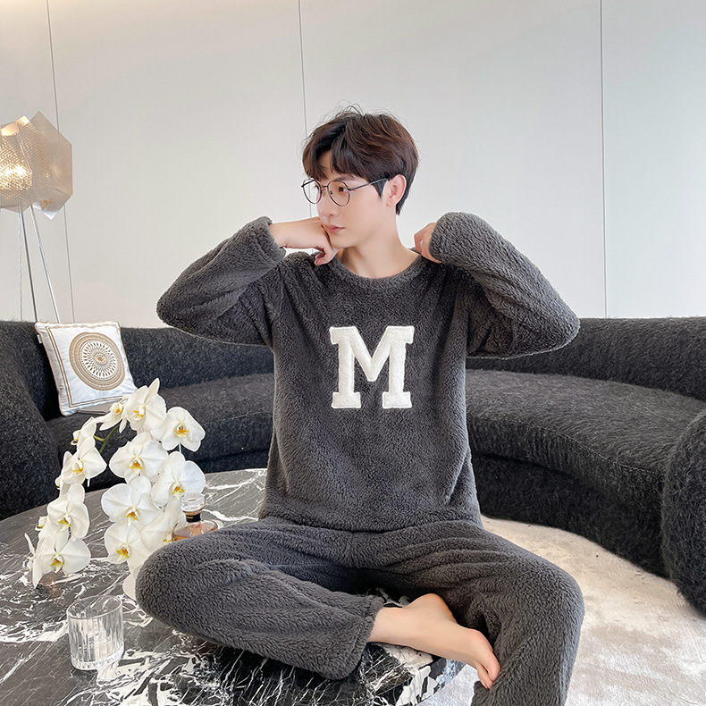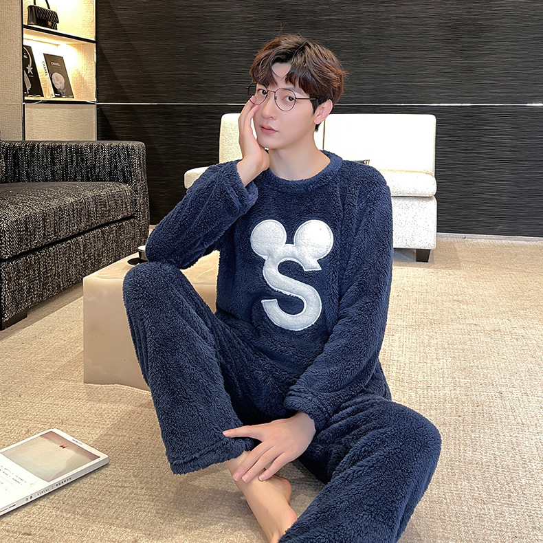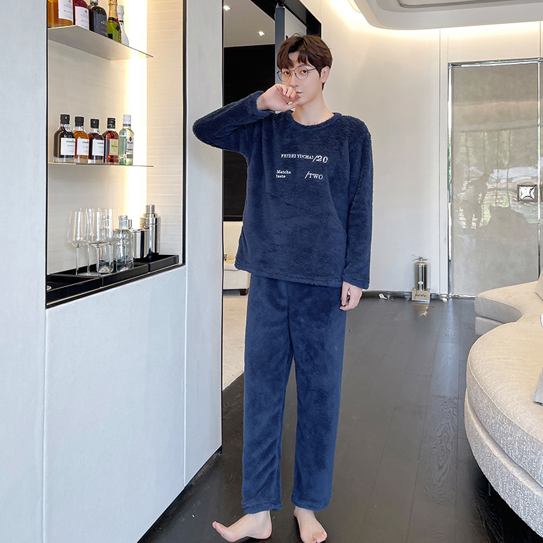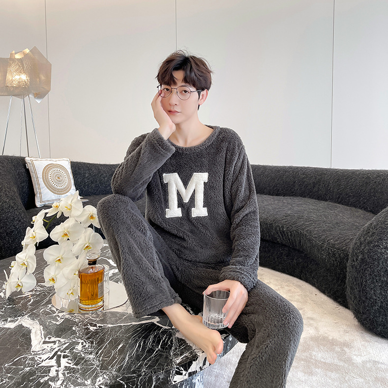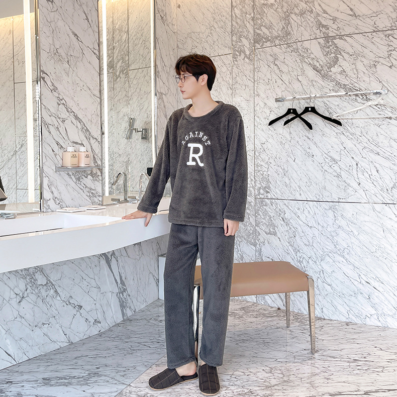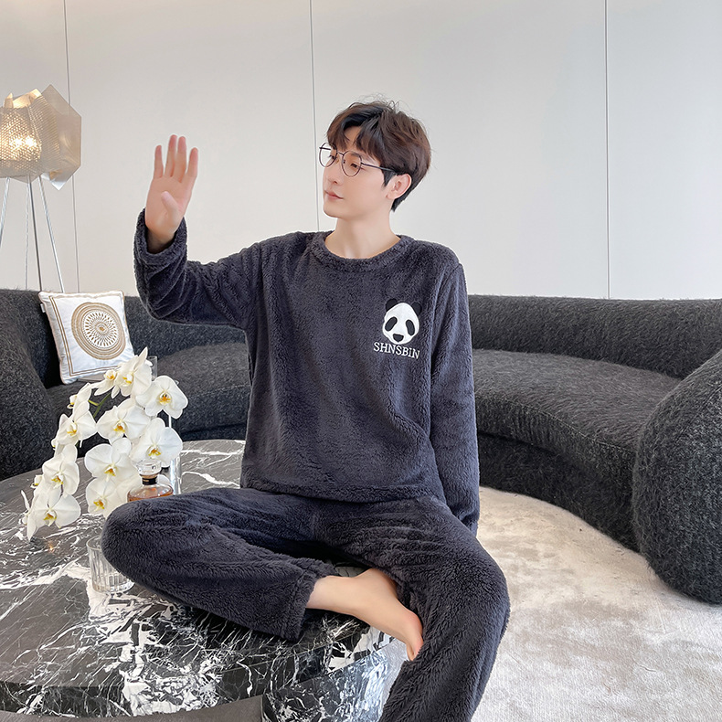 【睡衣】法兰绒冬季男士睡衣加绒加厚保暖长袖套头家居服简约大码190斤以内
