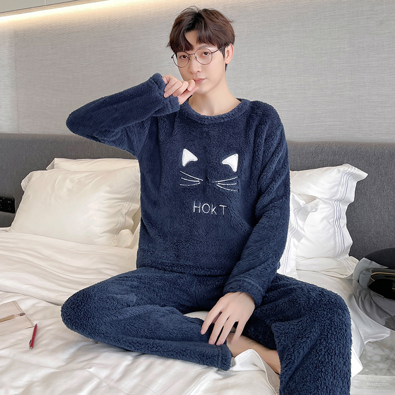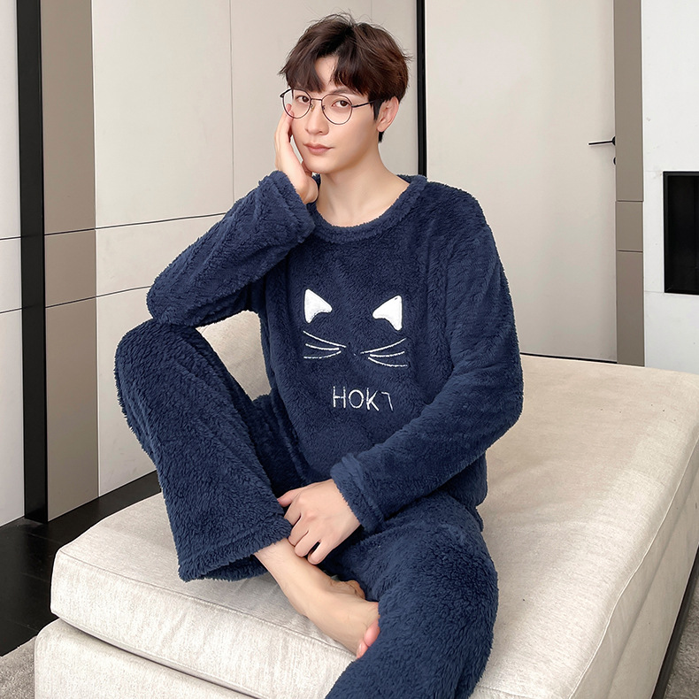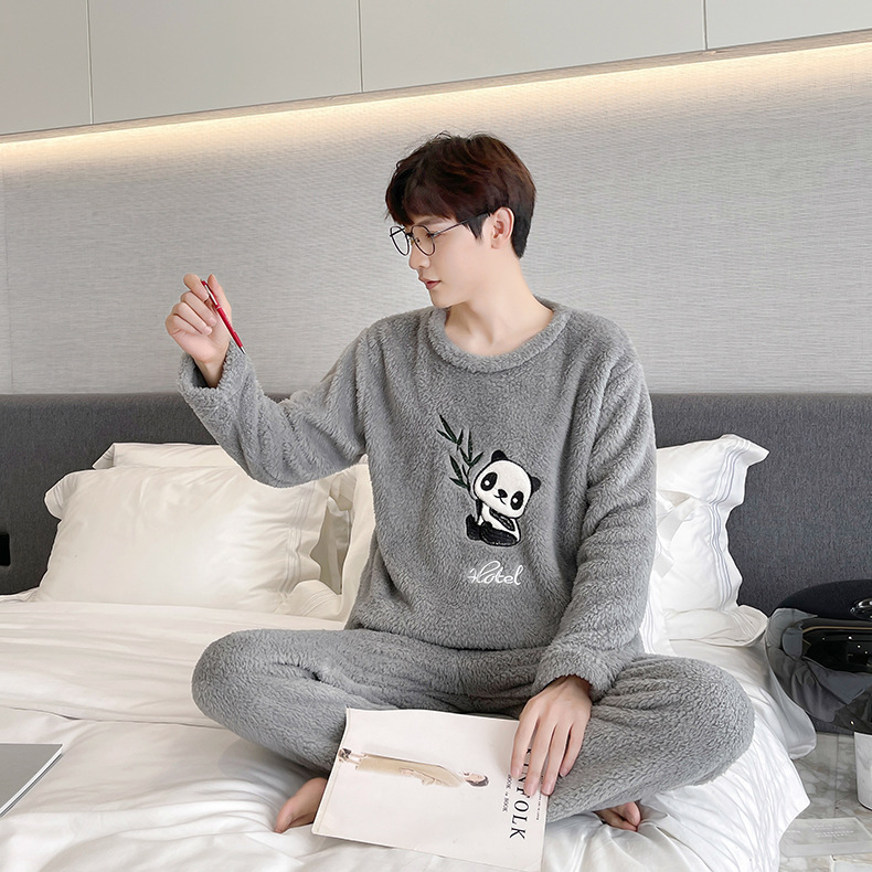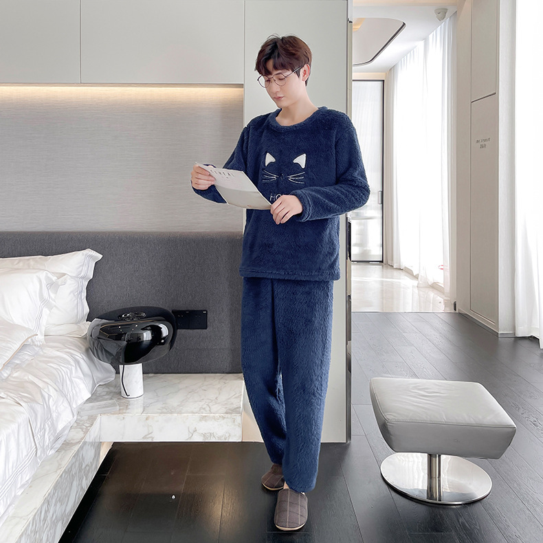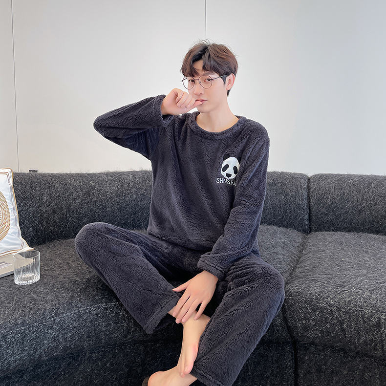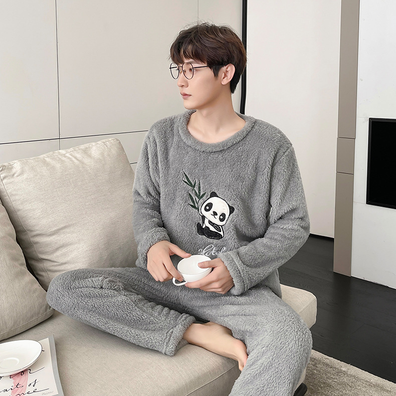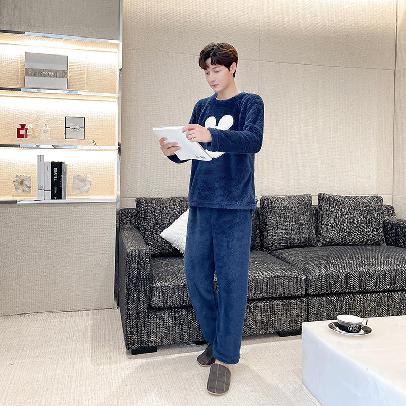 【睡衣】法兰绒冬季男士睡衣加绒加厚保暖长袖套头家居服简约大码190斤以内