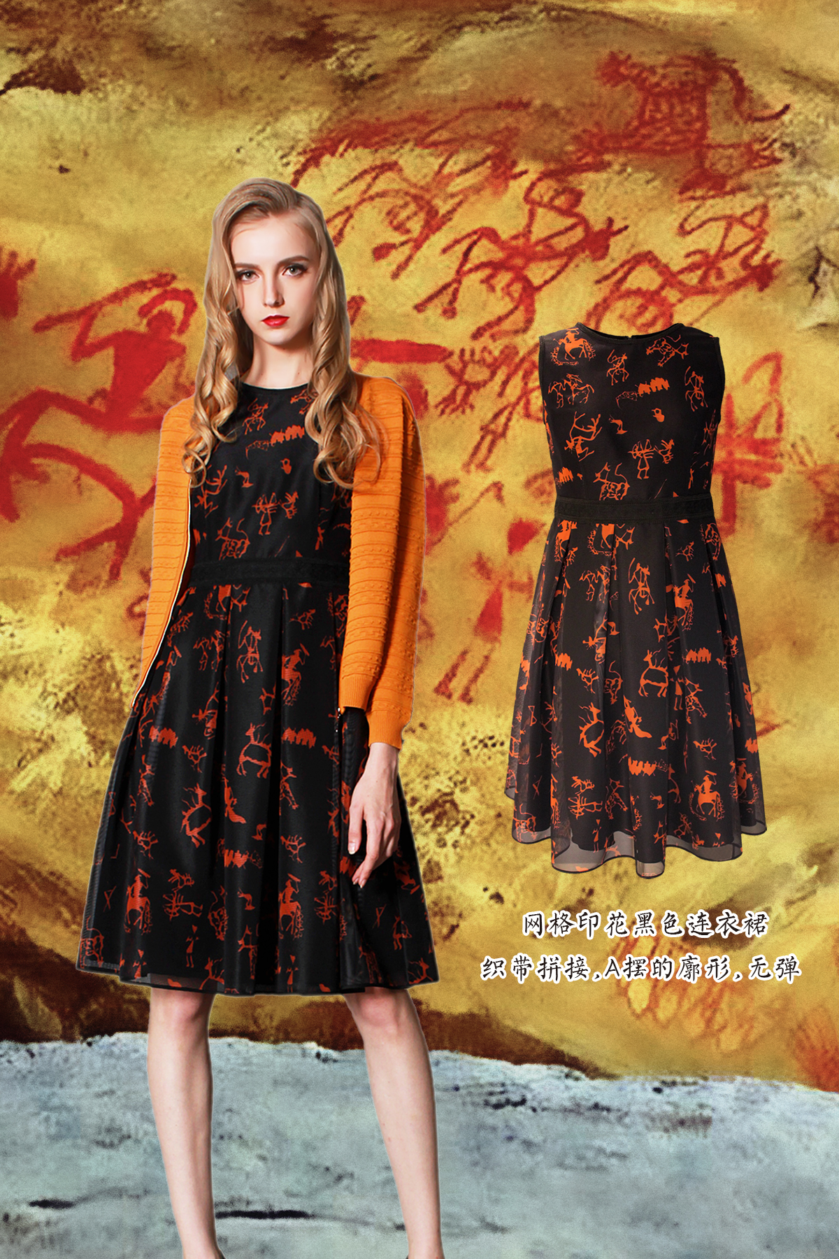 面料:网格印花 版型:A摆 属性:无弹