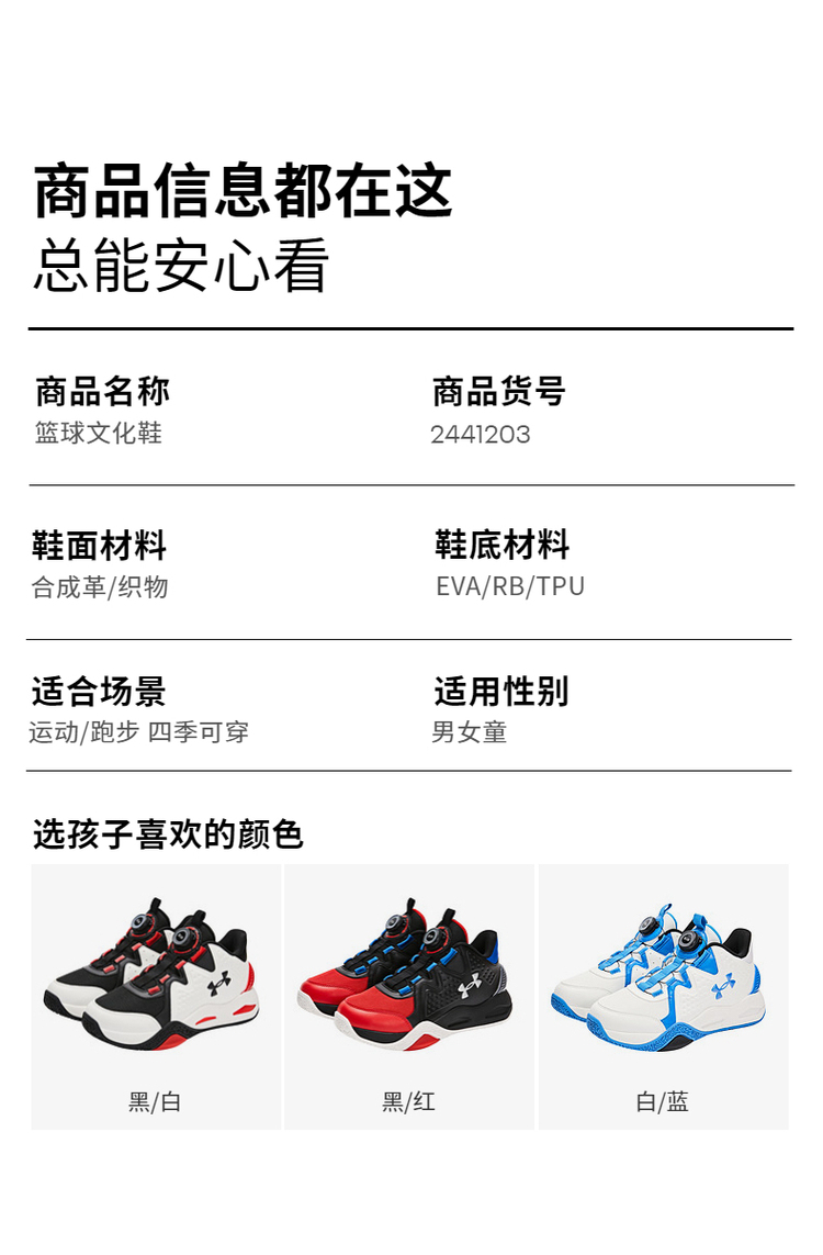 【12月-特惠福利】Under Armour安德玛 儿童篮球文化鞋2441203超低折扣