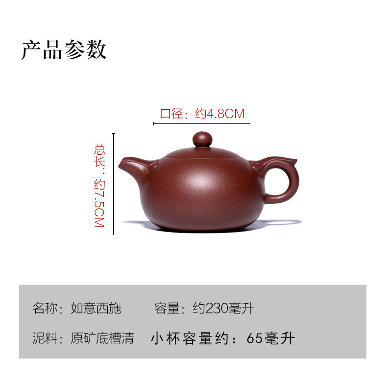 宜兴紫砂壶丨如意西施 原矿紫泥/朱泥 230ml 配证书礼盒手提袋 送礼自用 可泡各种茶叶