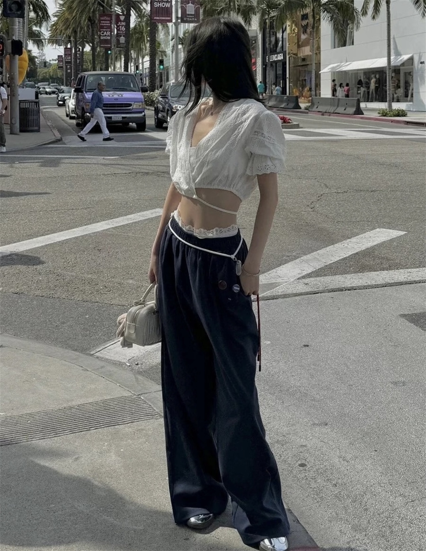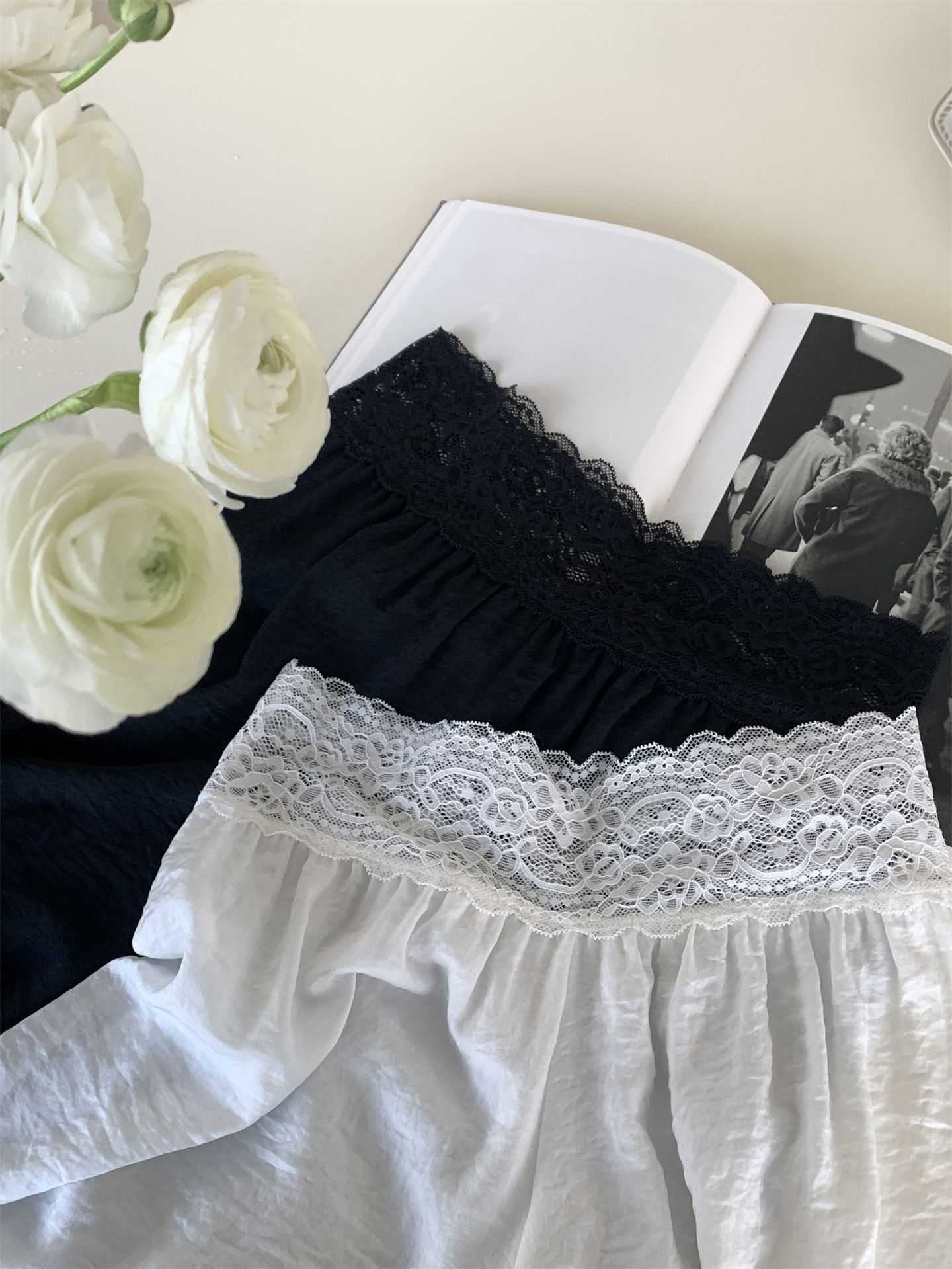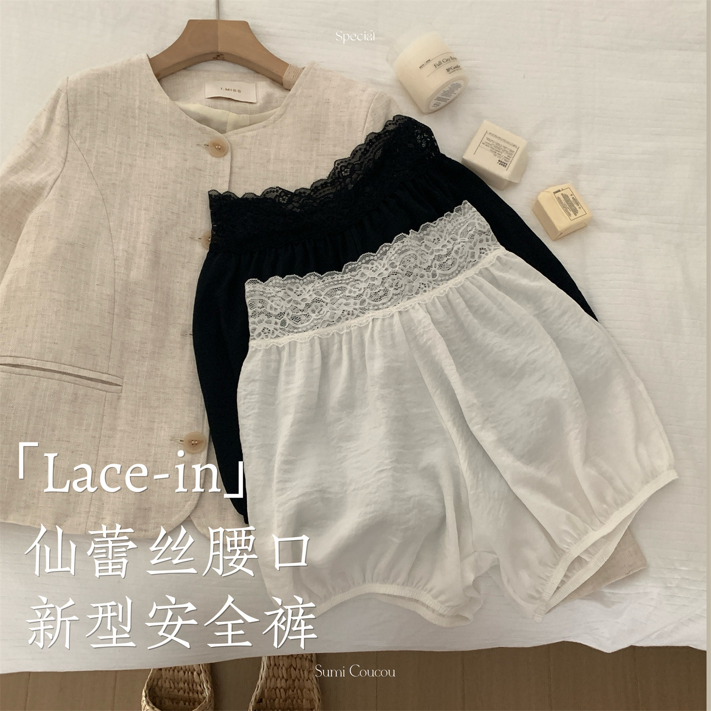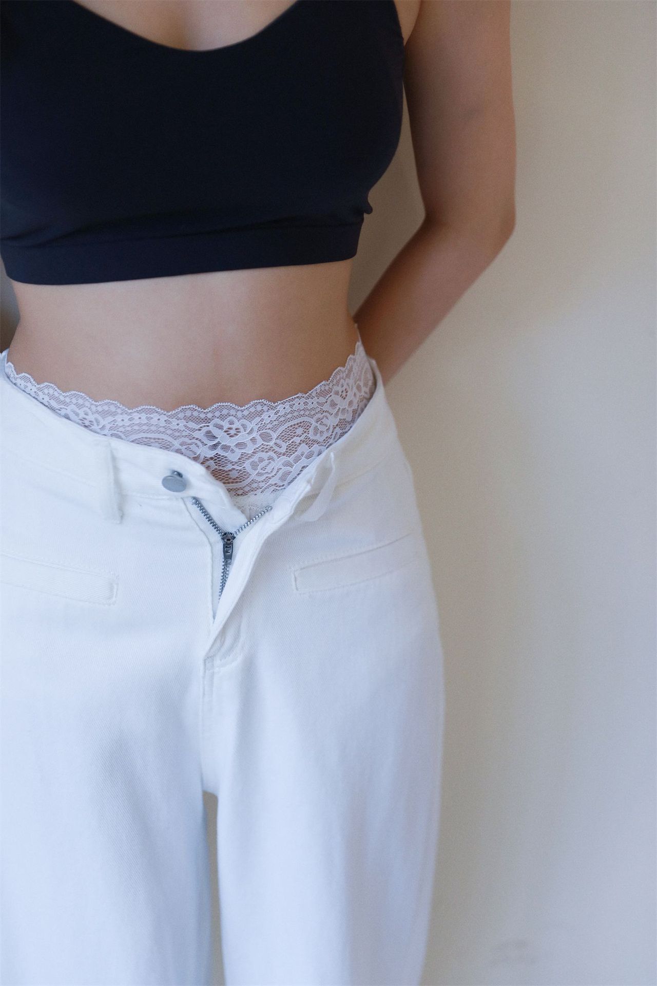 腰口带蕾丝花边