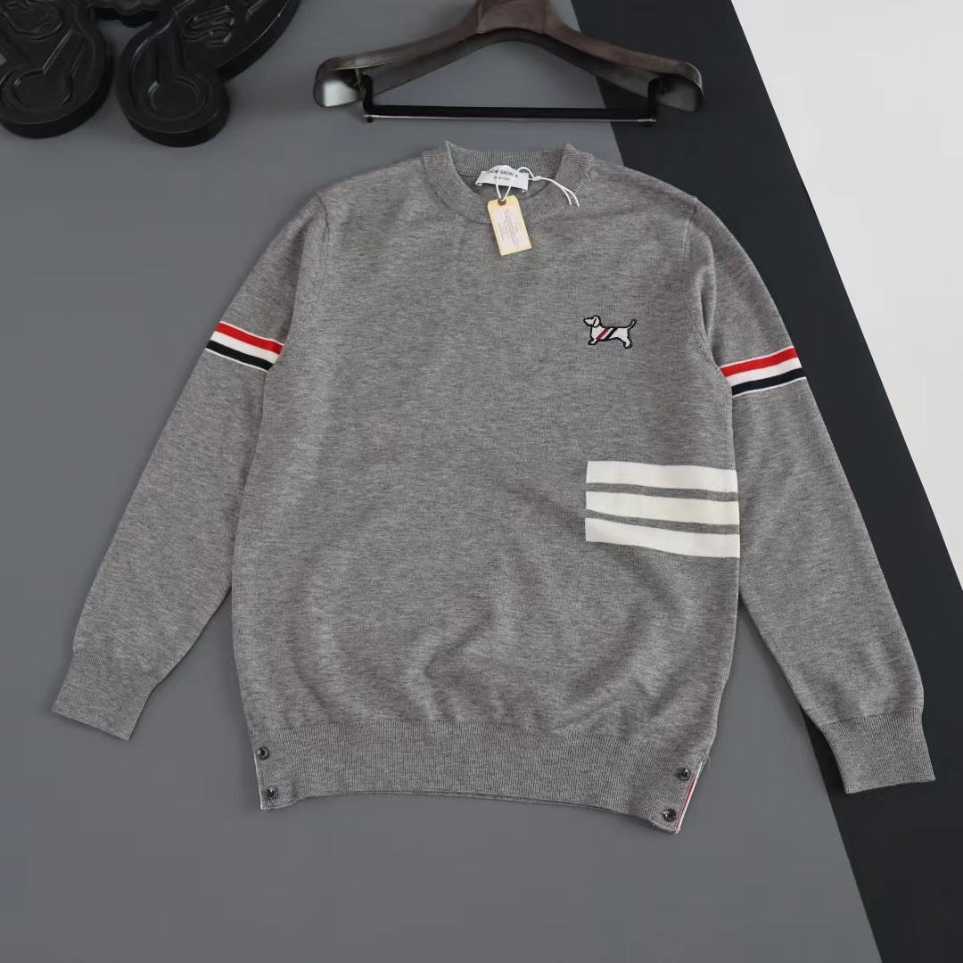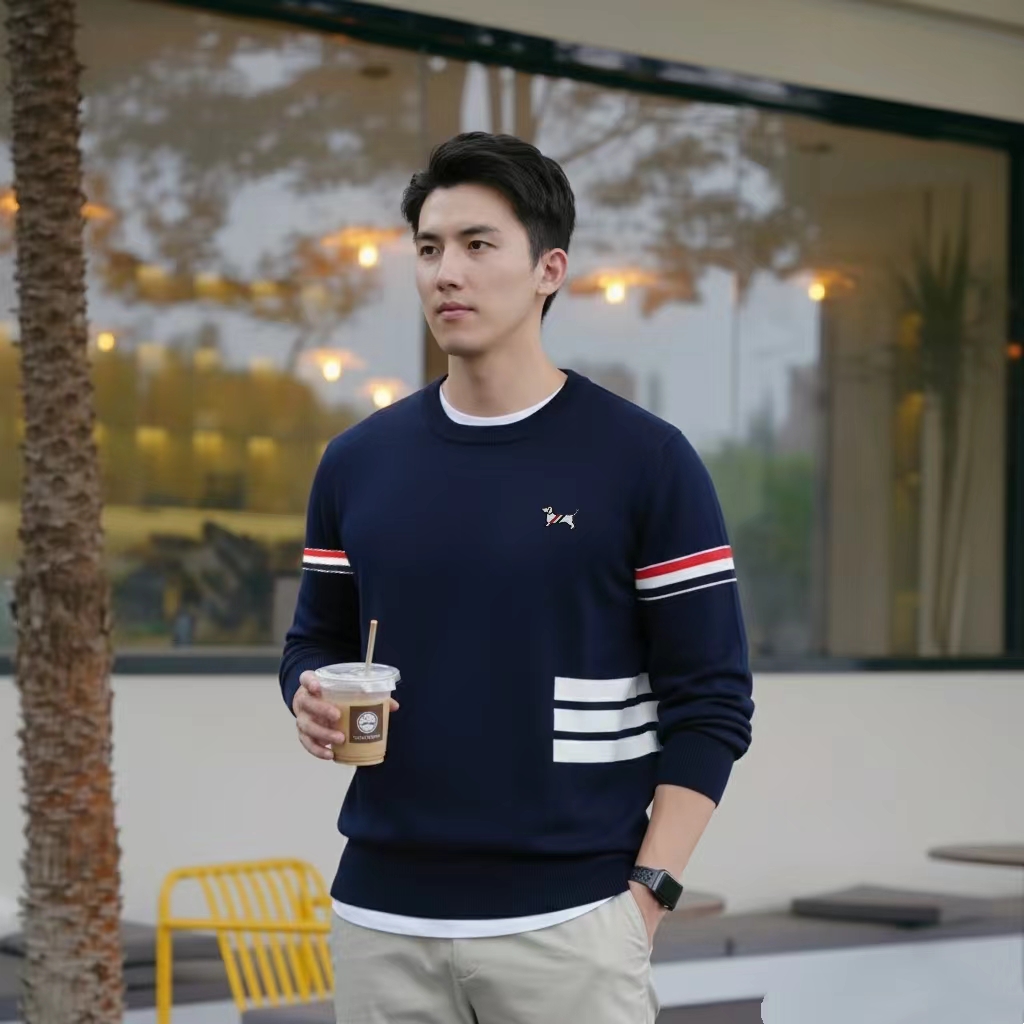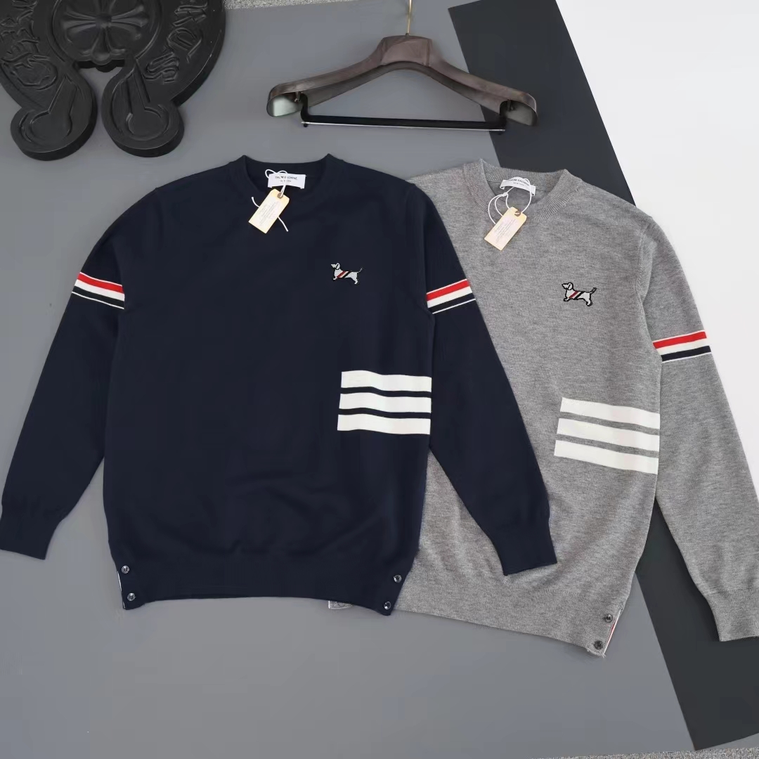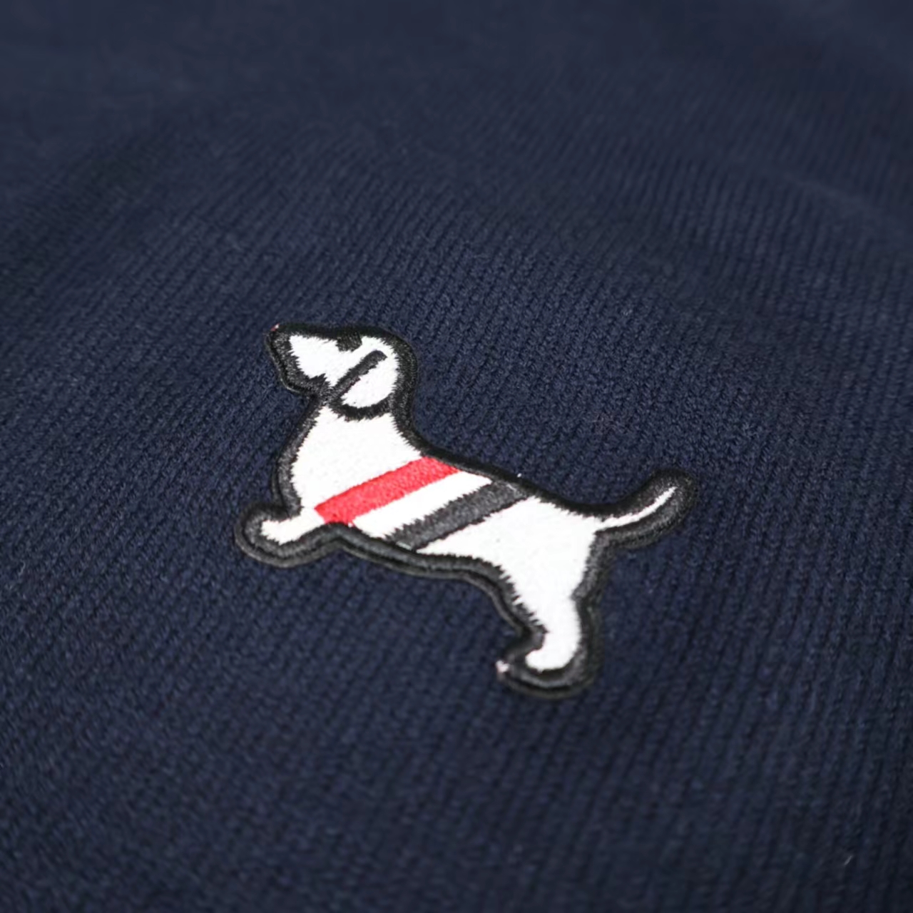 2025新款胸前小狗刺绣情侣款毛衣 进口先进横机纺织工艺,高密高支原版纱线,拿到手整件衣服十分有质感,用料十足!因有羊毛成分穿后建议低温手洗更有利于长久有型!细节细节再细节!今年新品针织毛衣!袖臂色织四道杠!