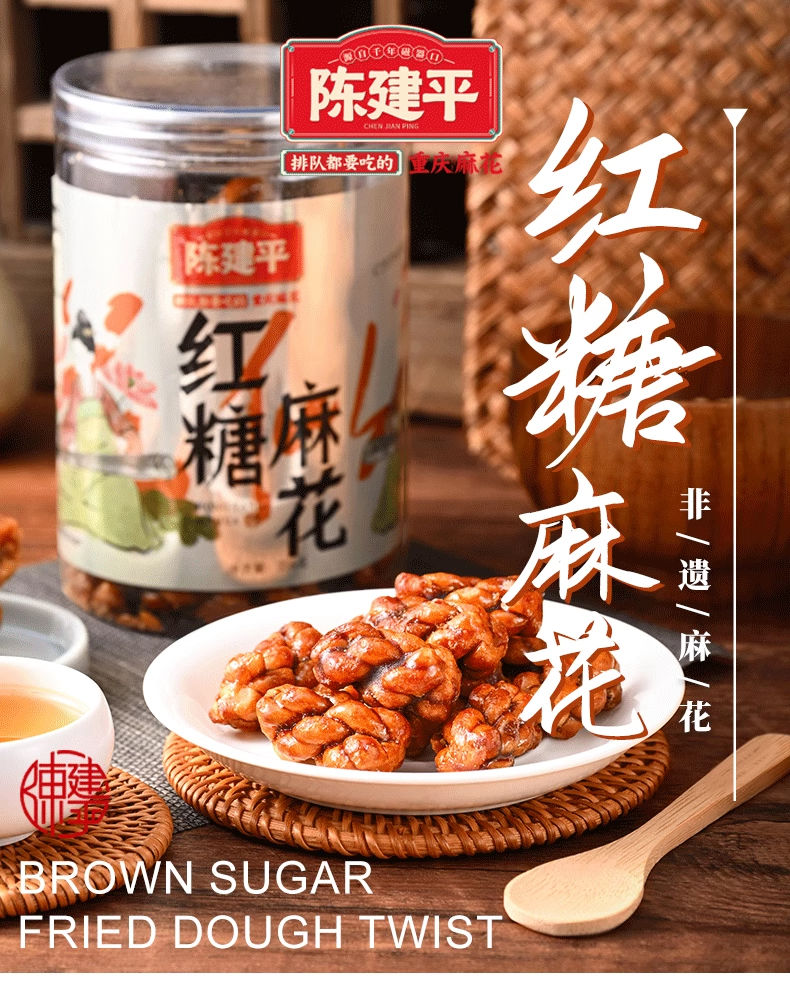 重庆特产磁器口陈建平红糖麻花358g即食罐装正宗零食手工休闲传统