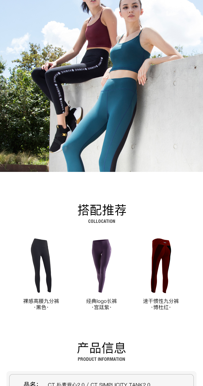 人气热卖全配色 CT朴素瑜伽背心CTSIMPLICITYTANK