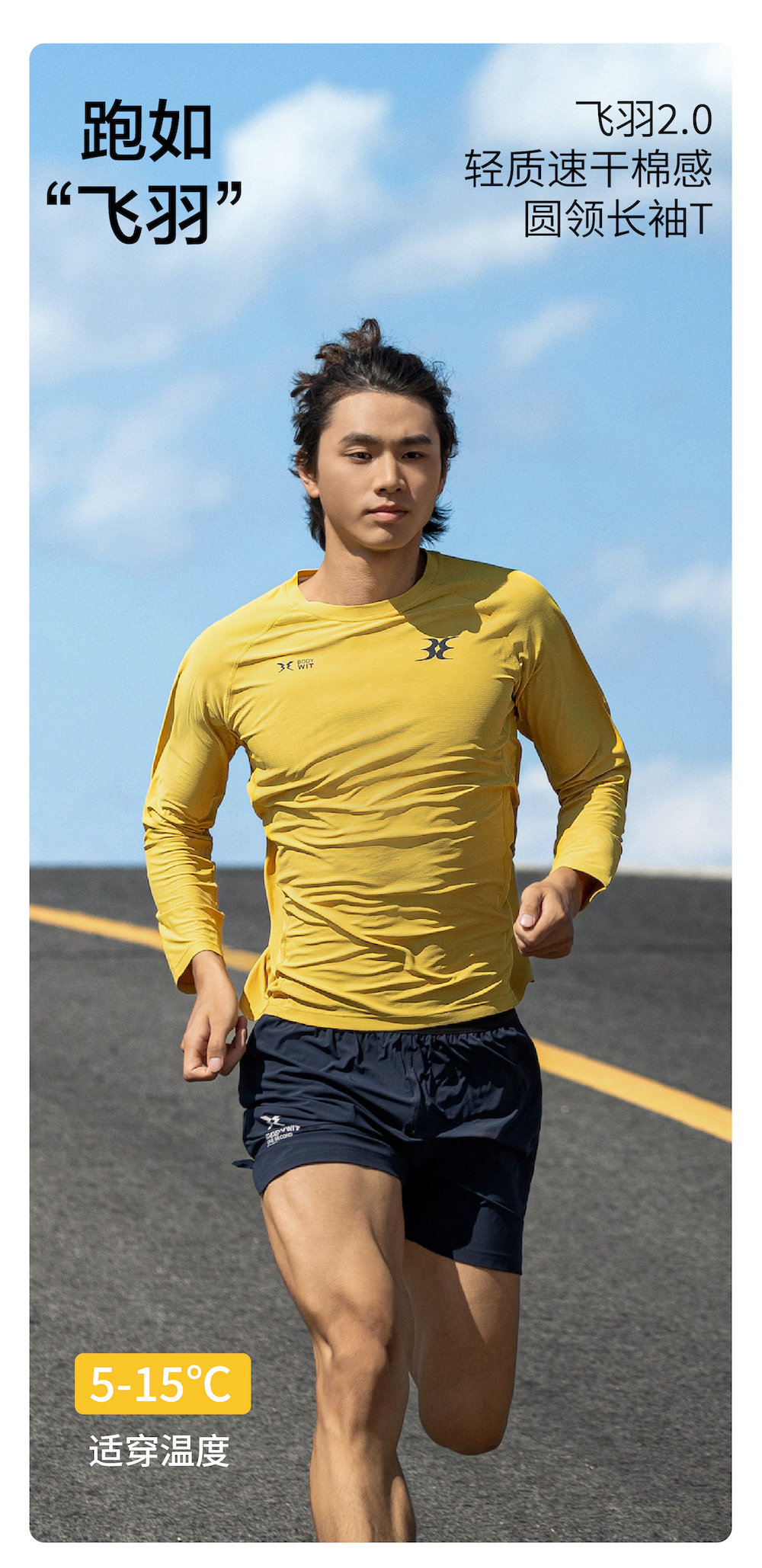 BODYWIT身体智慧男子飞羽轻薄速干圆领长袖T恤
