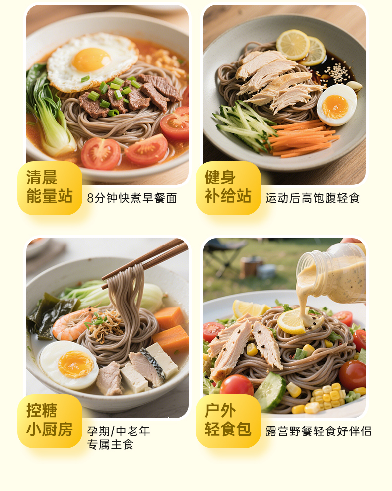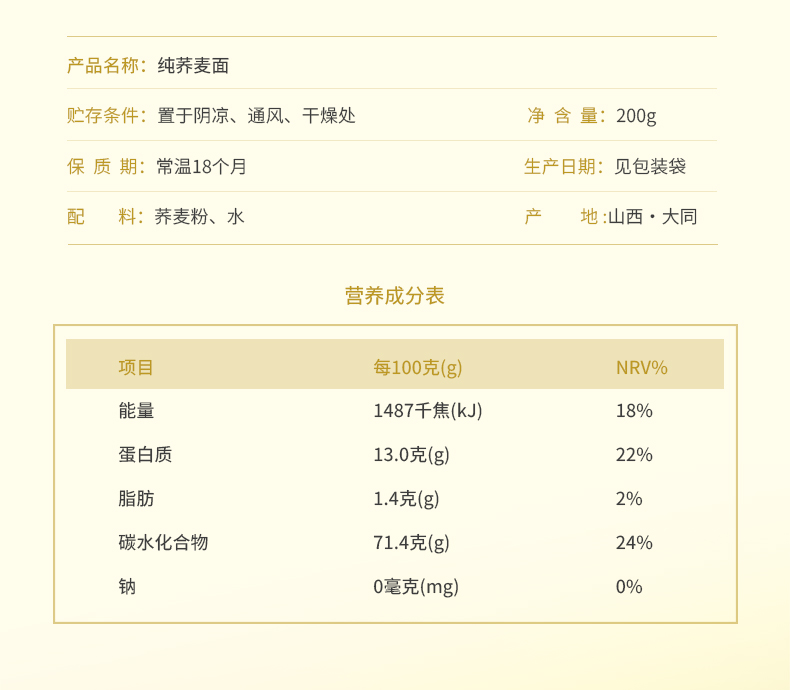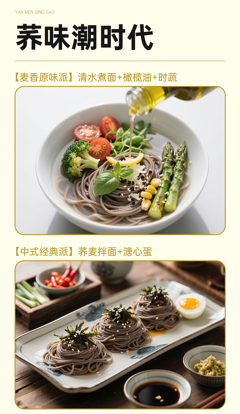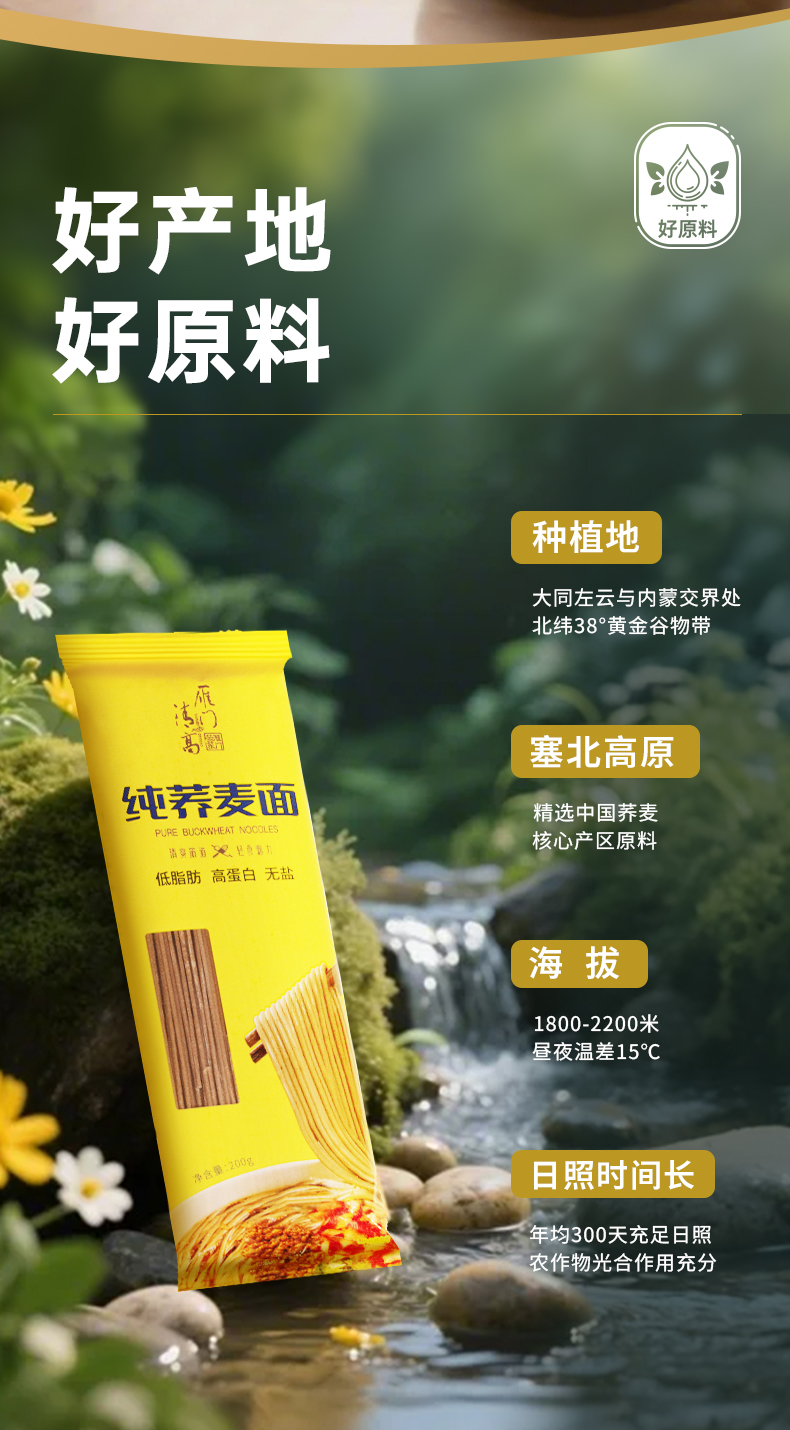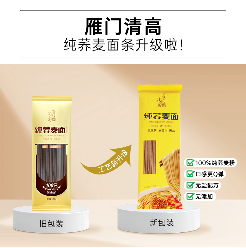 雁门清高100%纯荞麦面条0脂方便速食糖人高饱腹代餐主食杂粮粗粮 200g*5袋