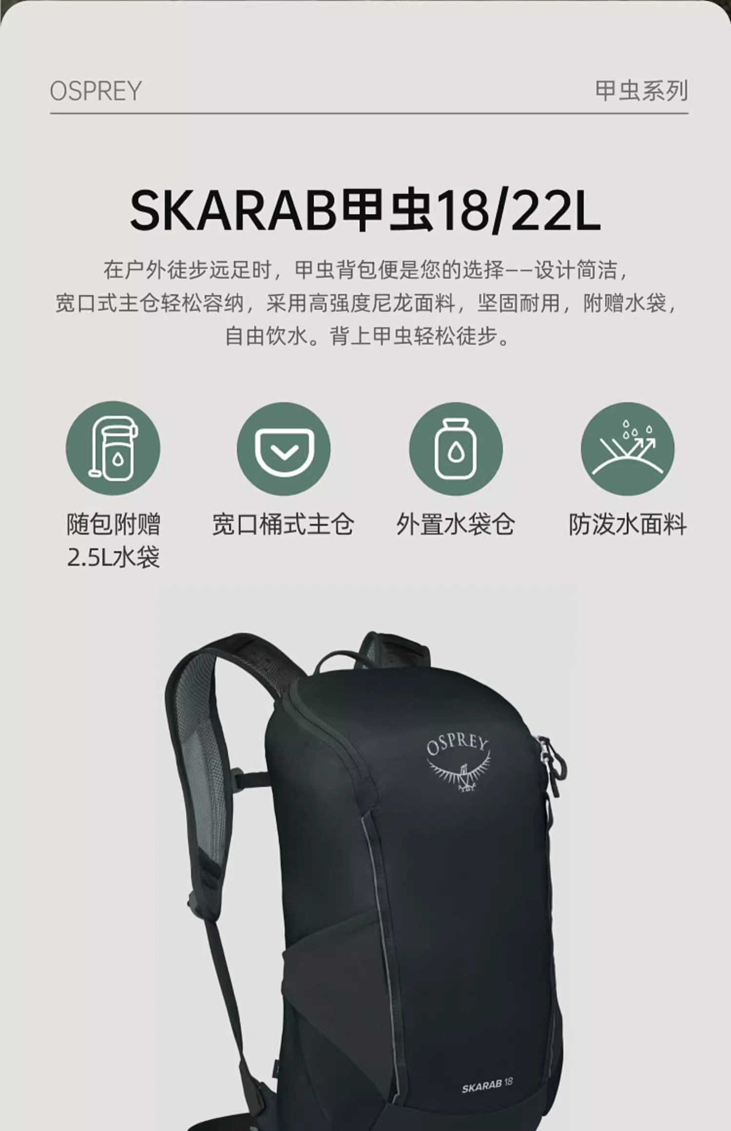 OSPREY小鹰Skarab甲虫22L户外包双肩包徒步旅行背包男士背包