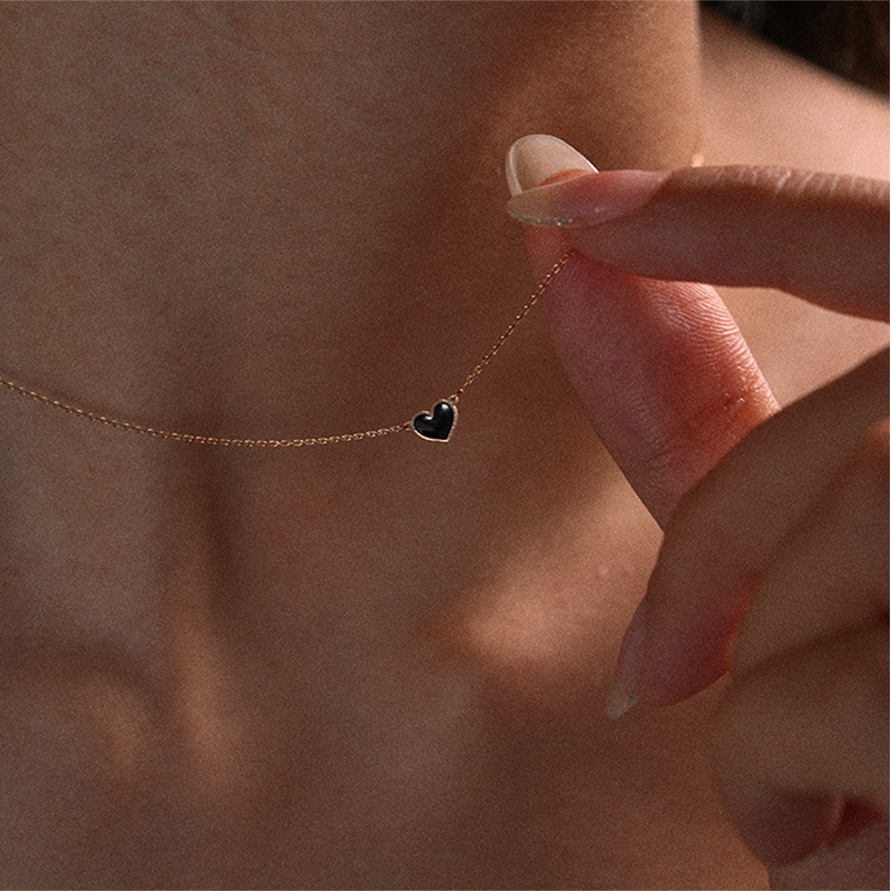 北京仓|Vanrycke-Emoji-18K玫瑰金 心形 黑色 珐琅 项链[法国设计师]
