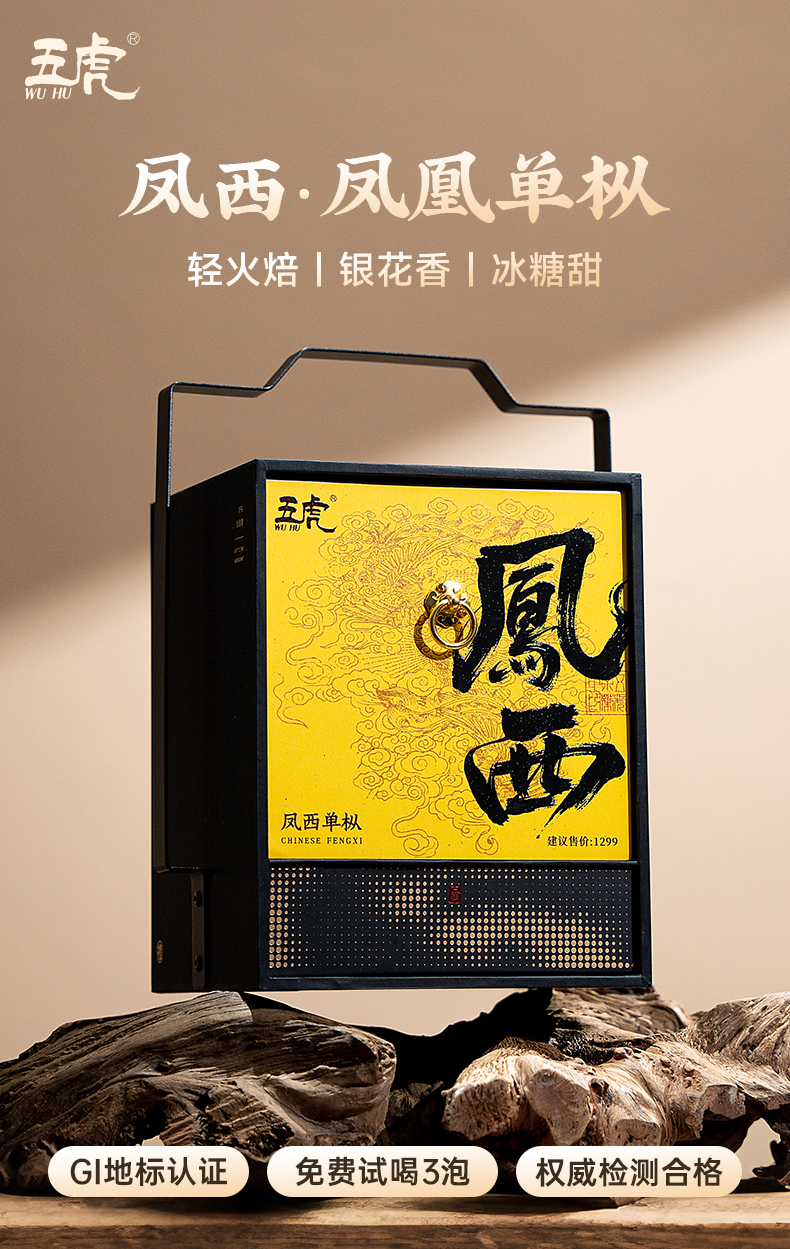 【年货礼盒】茶叶 广东潮州鸭屎香 凤西单枞 茶礼 乌龙茶 提篮 茶叶礼盒 茶饮 五虎 288g