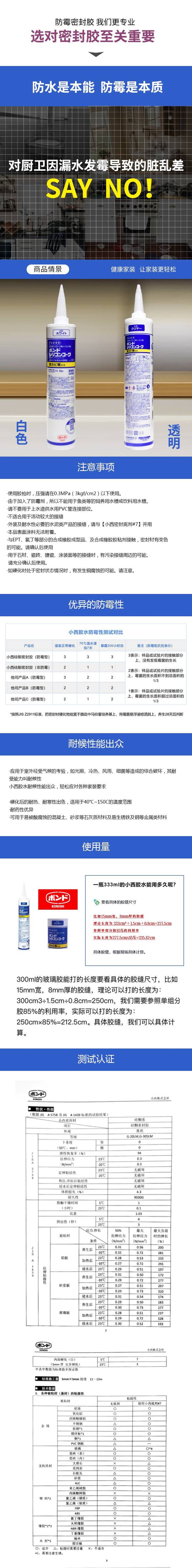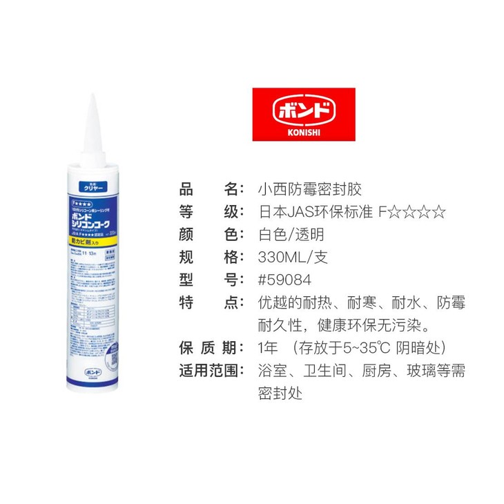 日本进口小西硅胶防水防霉绿色环保玻璃胶白色防高温密封硅胶
