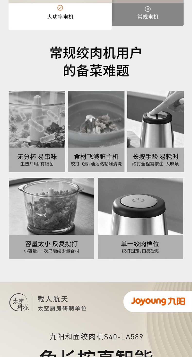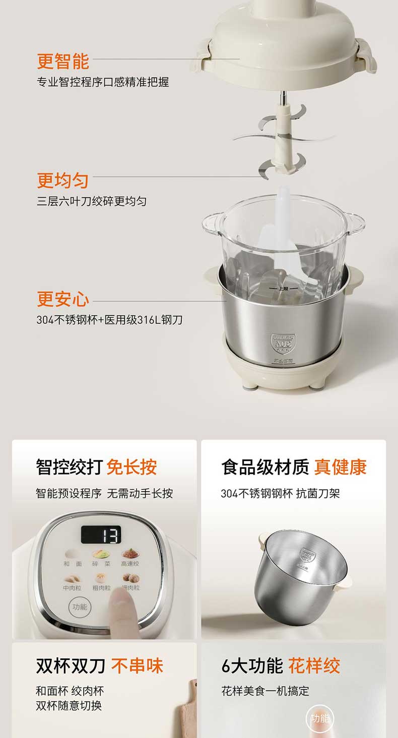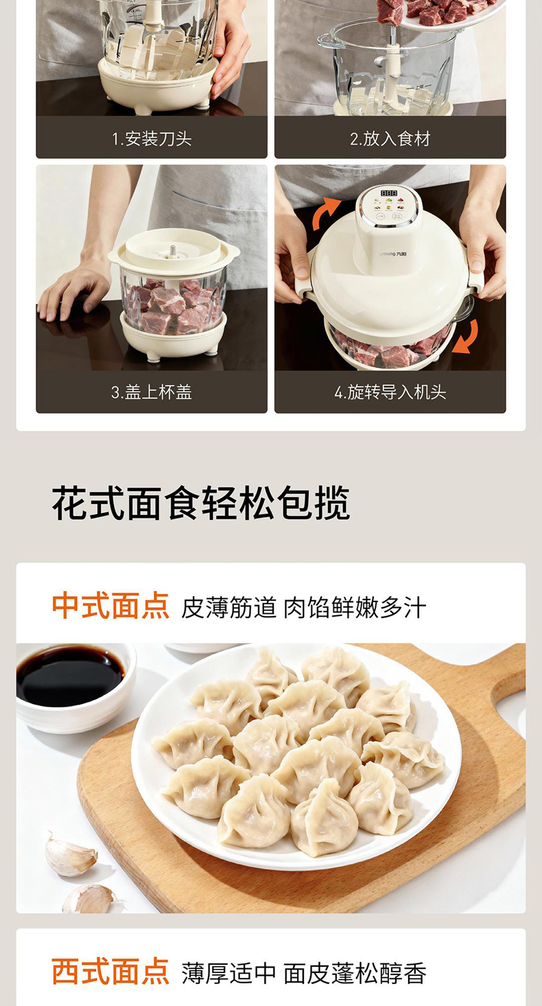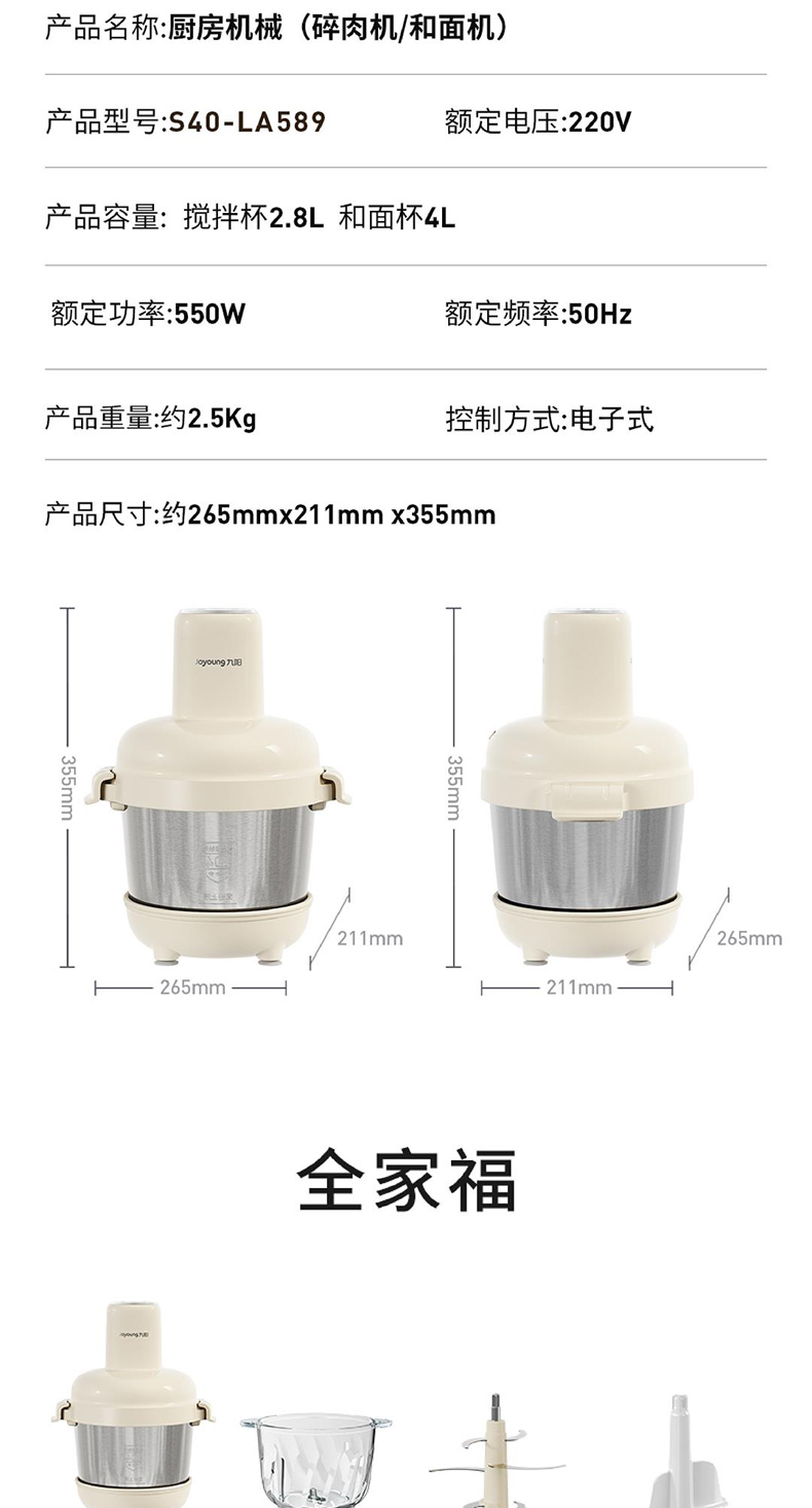 九阳和面绞肉机2.8L+4L双杯套娃绞菜绞馅机饺子肉馅机搅拌料理机