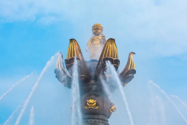 灵山有一座自带BGM的动态喷泉,九龙灌浴